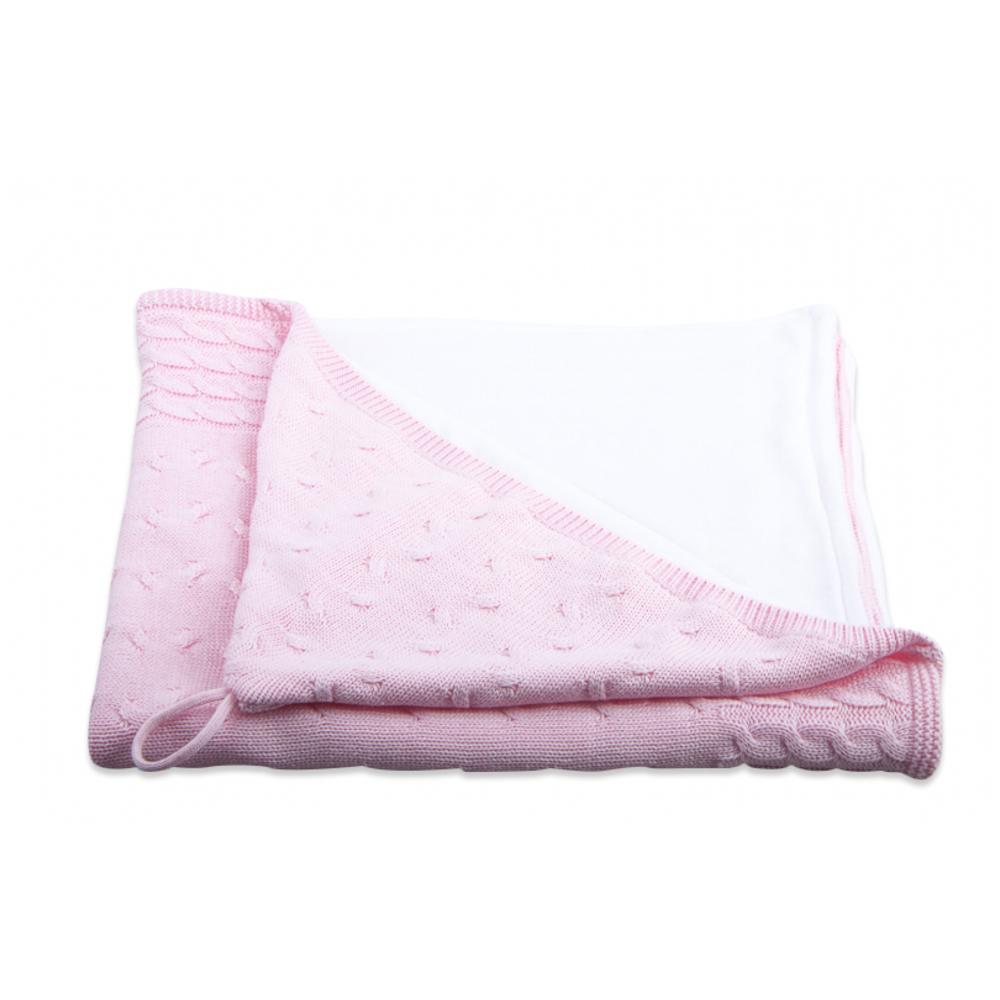 Babydecke Kapuzendecke mit Nickistoff Zopfstrick rosa (75x75 cm)