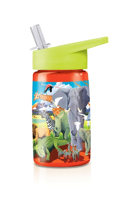 Trinkflasche aus Tritan mit Strohhalm Afrika Safari Tiere orange
