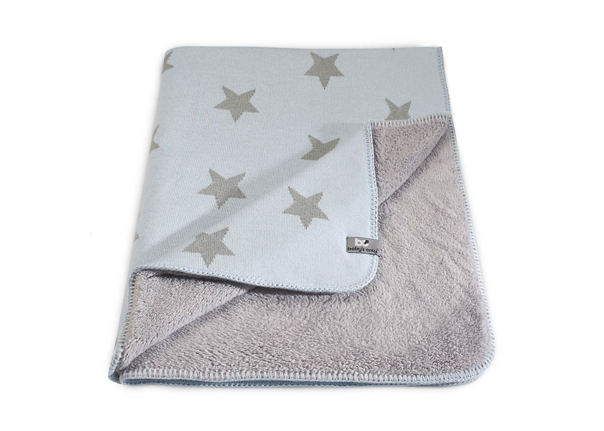 Babydecke Strickdecke mit Teddyfell Sterne hellblau grau (70x95 cm)