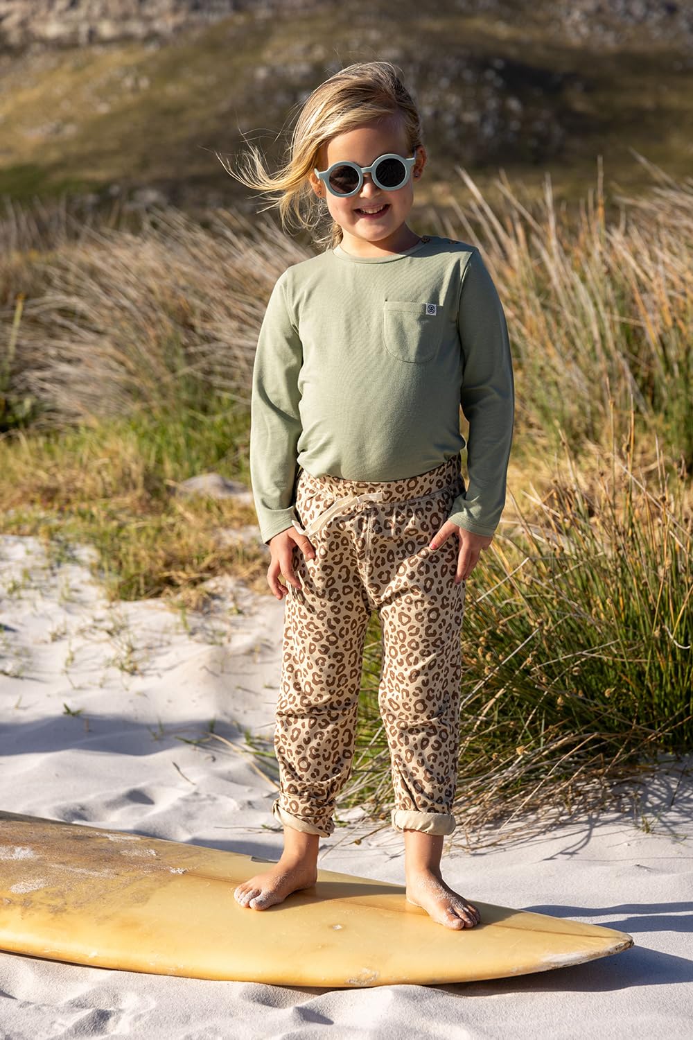 Unsere UV-schützenden Jogginghosen bestehen aus unserer beliebten Stoffmischung aus Baumwolle (Bio) und Bambus, die sanft zur empfindlichen Haut Ihrer Kleinen ist.