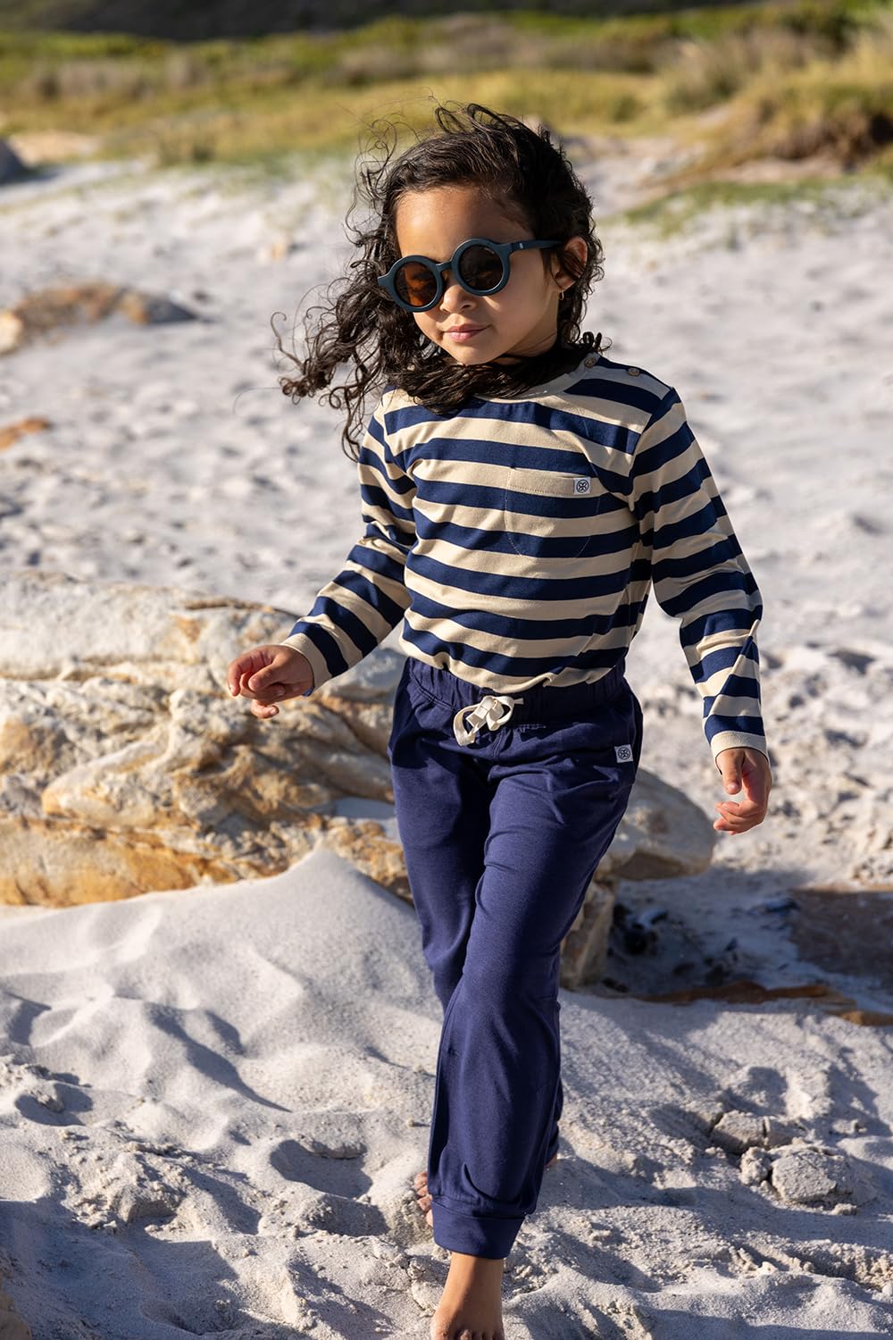Unsere UV-schützenden Jogginghosen bestehen aus unserer beliebten Stoffmischung aus Baumwolle (Bio) und Bambus, die sanft zur empfindlichen Haut Ihrer Kleinen ist.