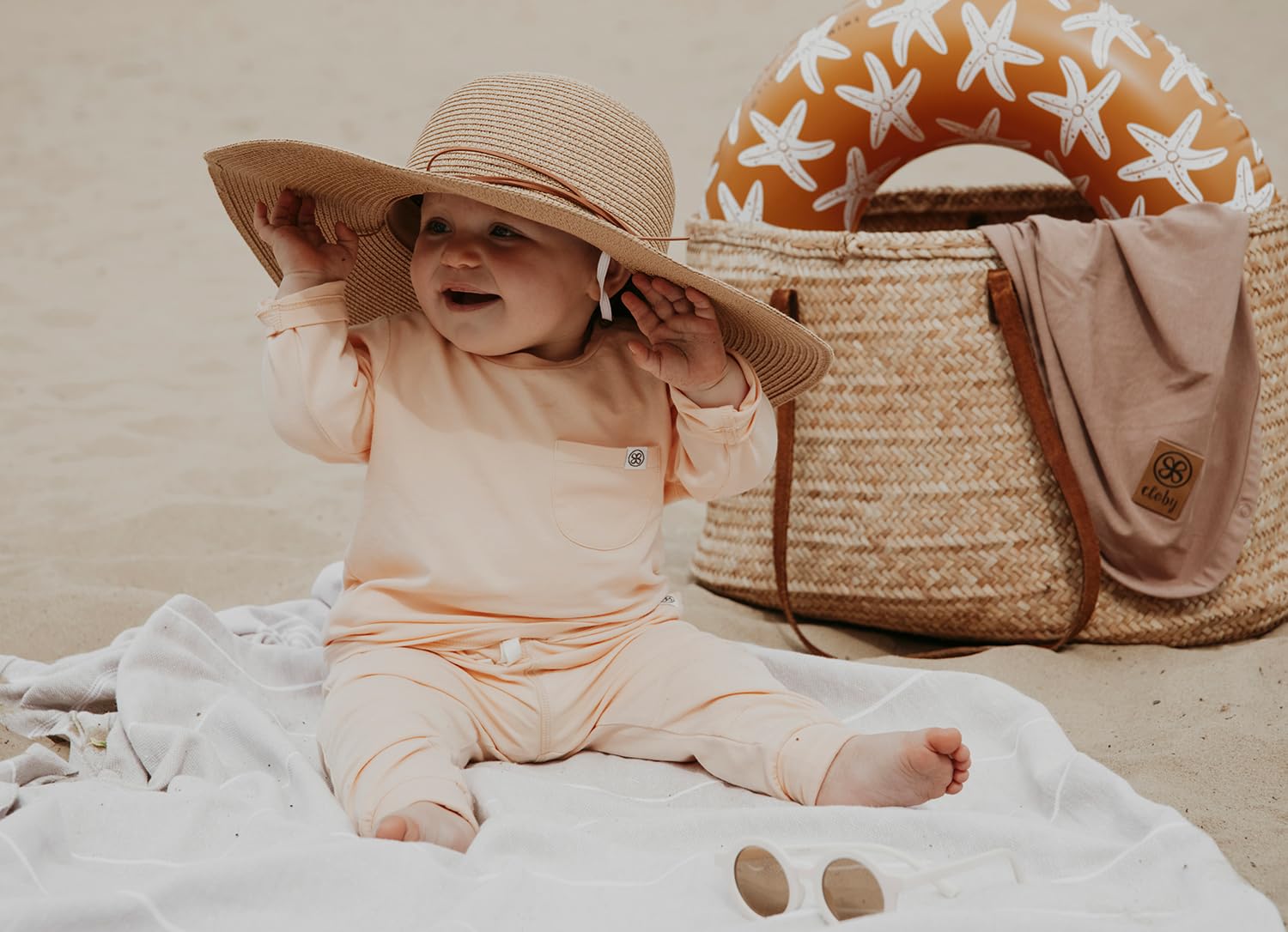 Entdecken Sie die UV-Schutz-Produktreihe von Cloby, die speziell für Babys und Kinder entwickelt wurde.