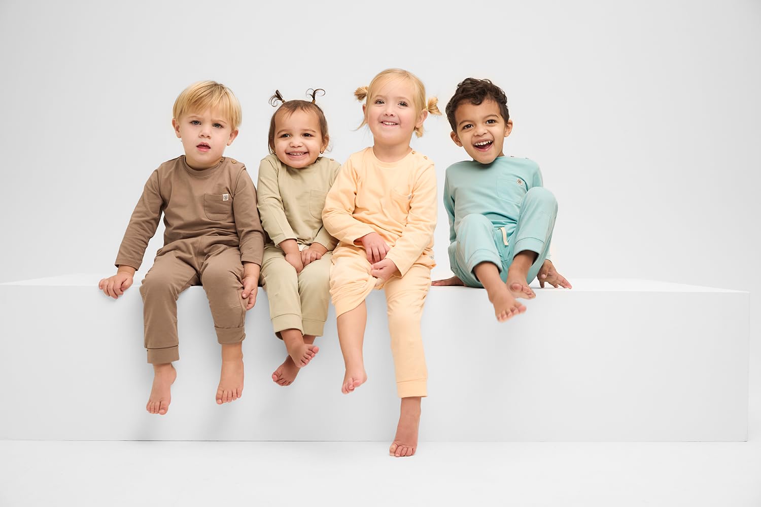Unsere UV-schützenden Jogginghosen bestehen aus unserer beliebten Stoffmischung aus Baumwolle (Bio) und Bambus, die sanft zur empfindlichen Haut Ihrer Kleinen ist.
