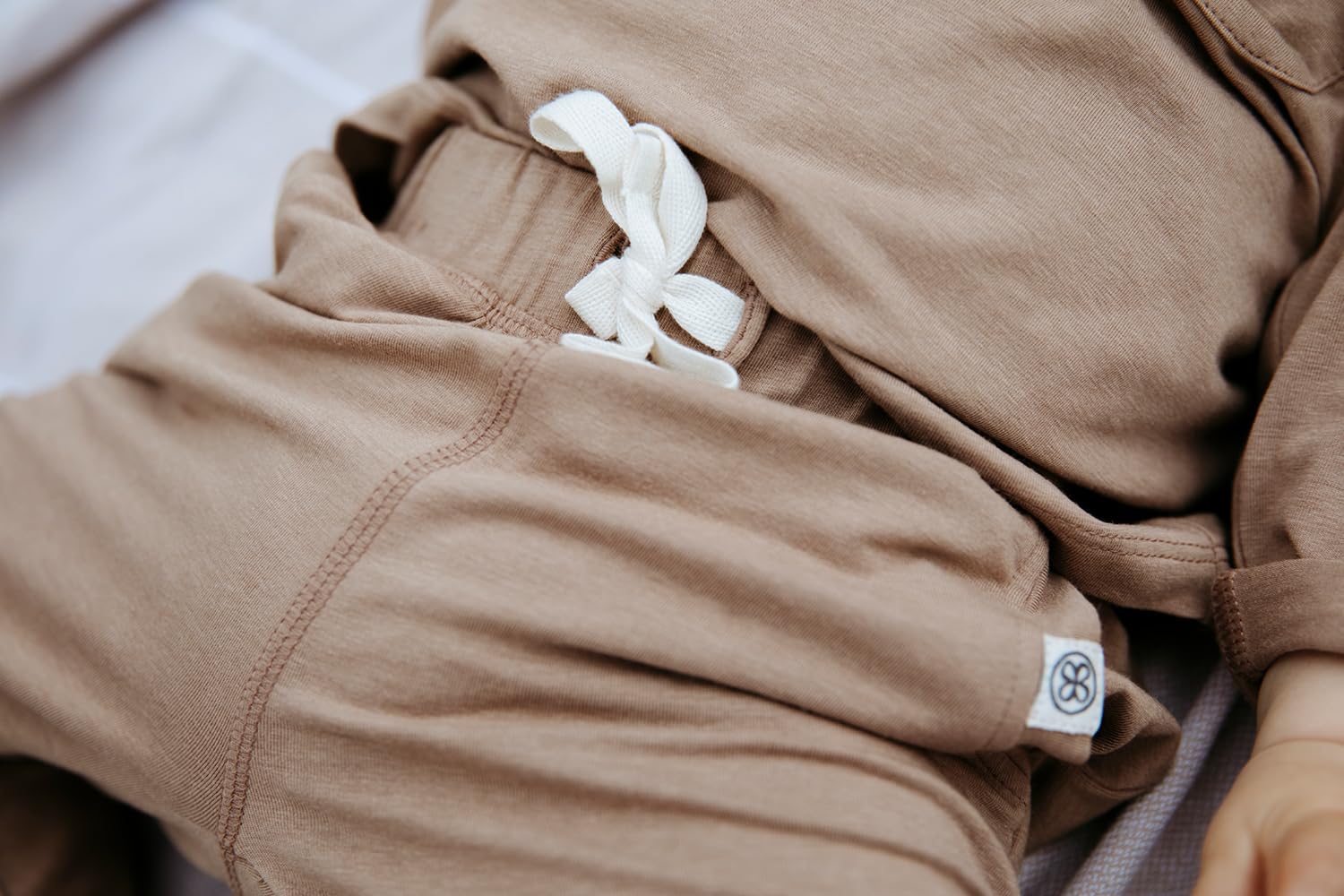 Unsere UV-schützenden Jogginghosen bestehen aus unserer beliebten Stoffmischung aus Baumwolle (Bio) und Bambus, die sanft zur empfindlichen Haut Ihrer Kleinen ist.