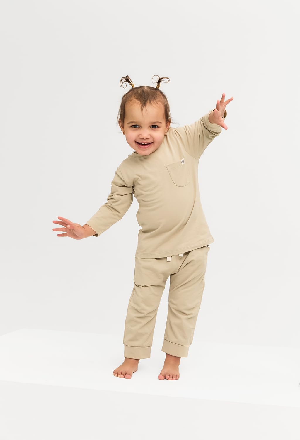 Unsere UV-schützenden Jogginghosen bestehen aus unserer beliebten Stoffmischung aus Baumwolle (Bio) und Bambus, die sanft zur empfindlichen Haut Ihrer Kleinen ist.