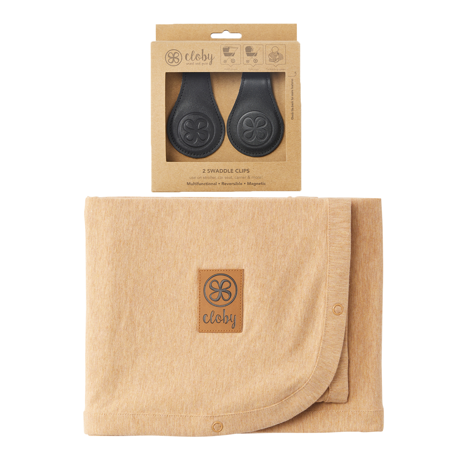 Set UV-Schutz-Decke Beige Melange und magnetische Clips schwarz