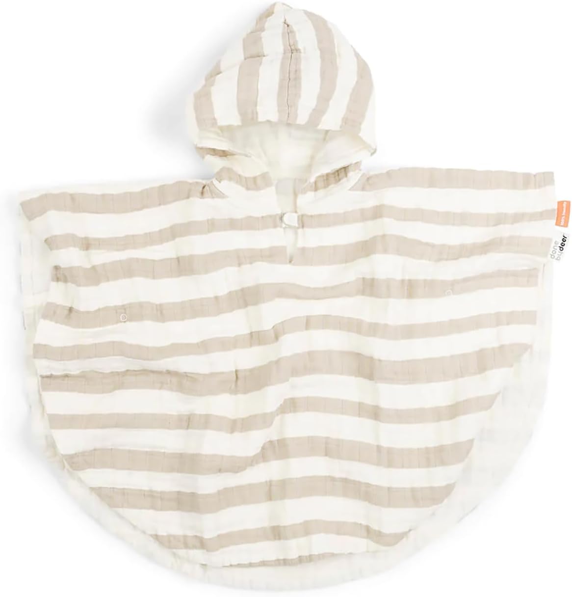 Der Badeponcho mit coolen Streifen ist perfekt, um dein Kleines nach dem Baden oder am Strand einzuwickeln. Die mehrlagige Biobaumwolle macht ihn besonders leicht und weich auf der Haut.