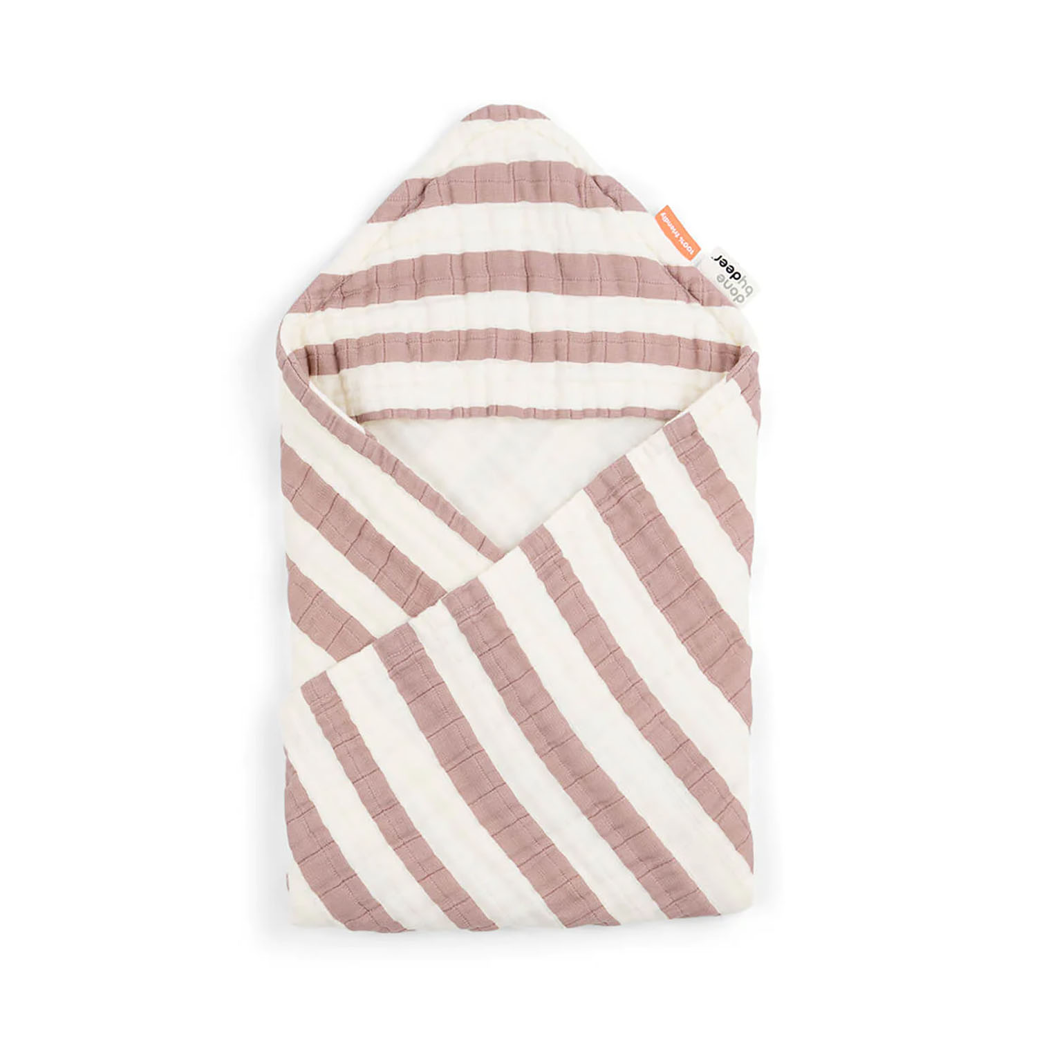 Das Kapuzenbadetuch mit breiten Streifen ist perfekt, um dein Kleines nach dem Baden einzuwickeln und zu trocknen.