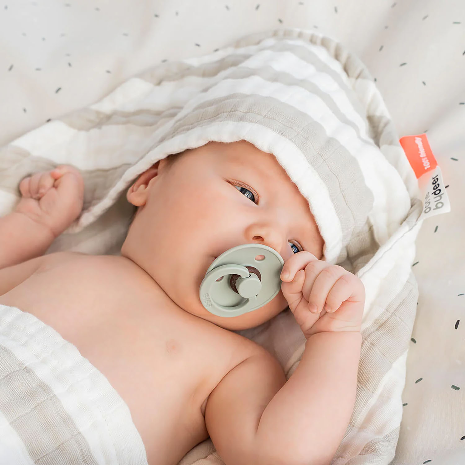 Das Kapuzenbadetuch mit breiten Streifen ist perfekt, um dein Kleines nach dem Baden einzuwickeln und zu trocknen.