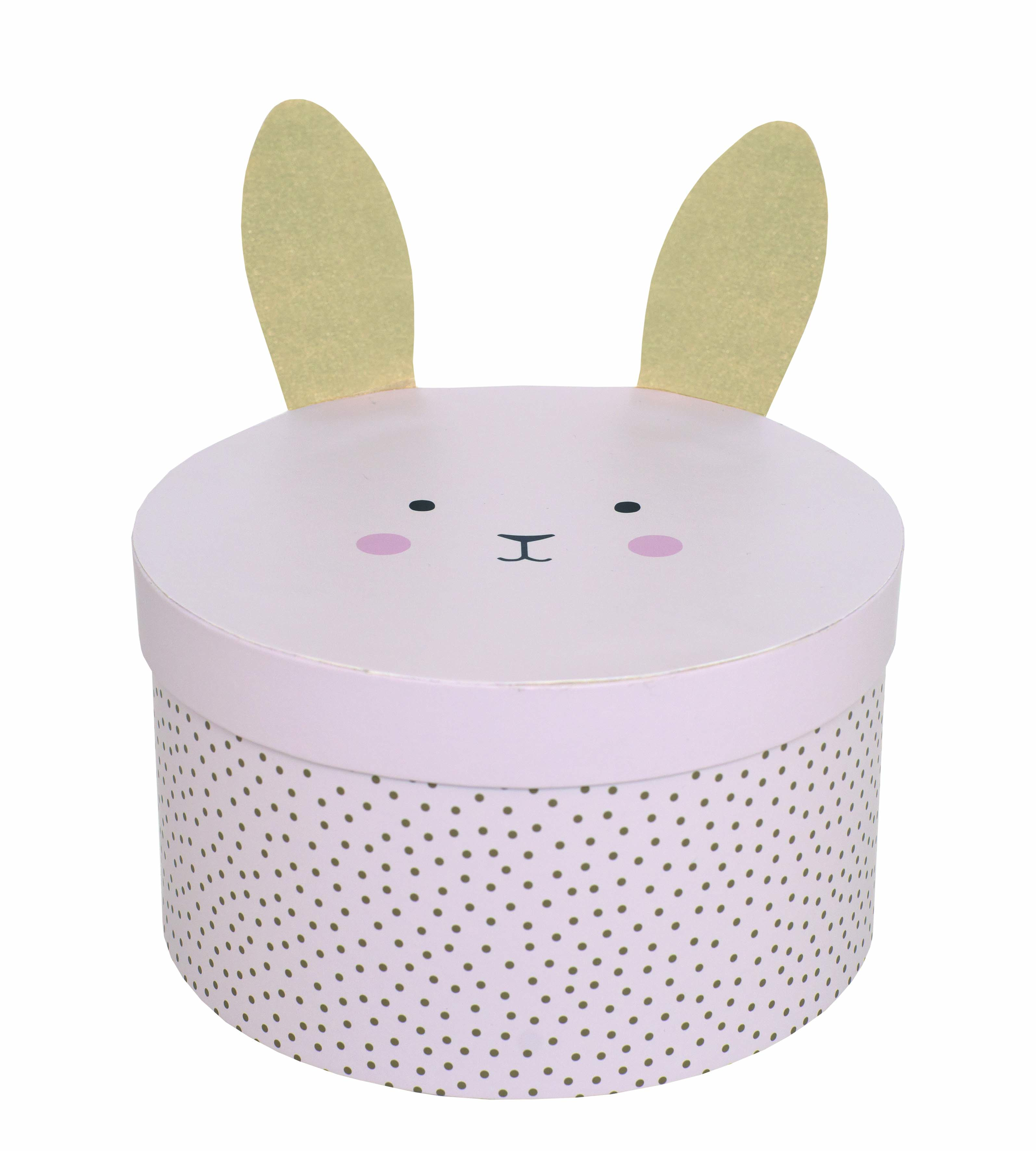 Stilvolle runde Aufbewahrungsboxen aus Hartkarton in zwei verschiedenen Größen.