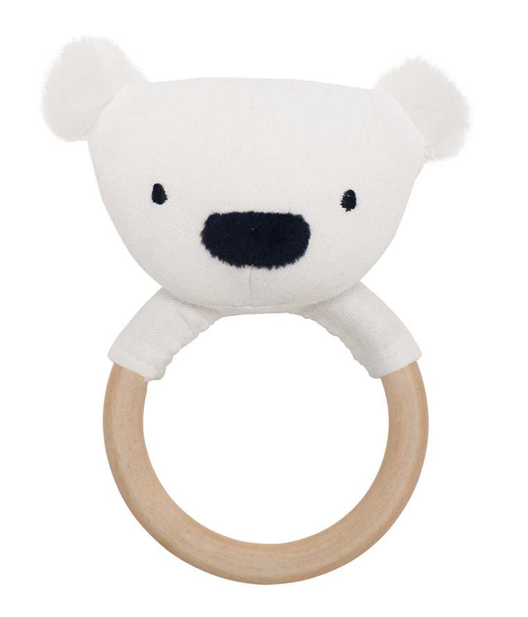 Durch den Holzring kann die Rassel mit den kleinen Fingern eines Babys leicht gegriffen und gehalten werden.