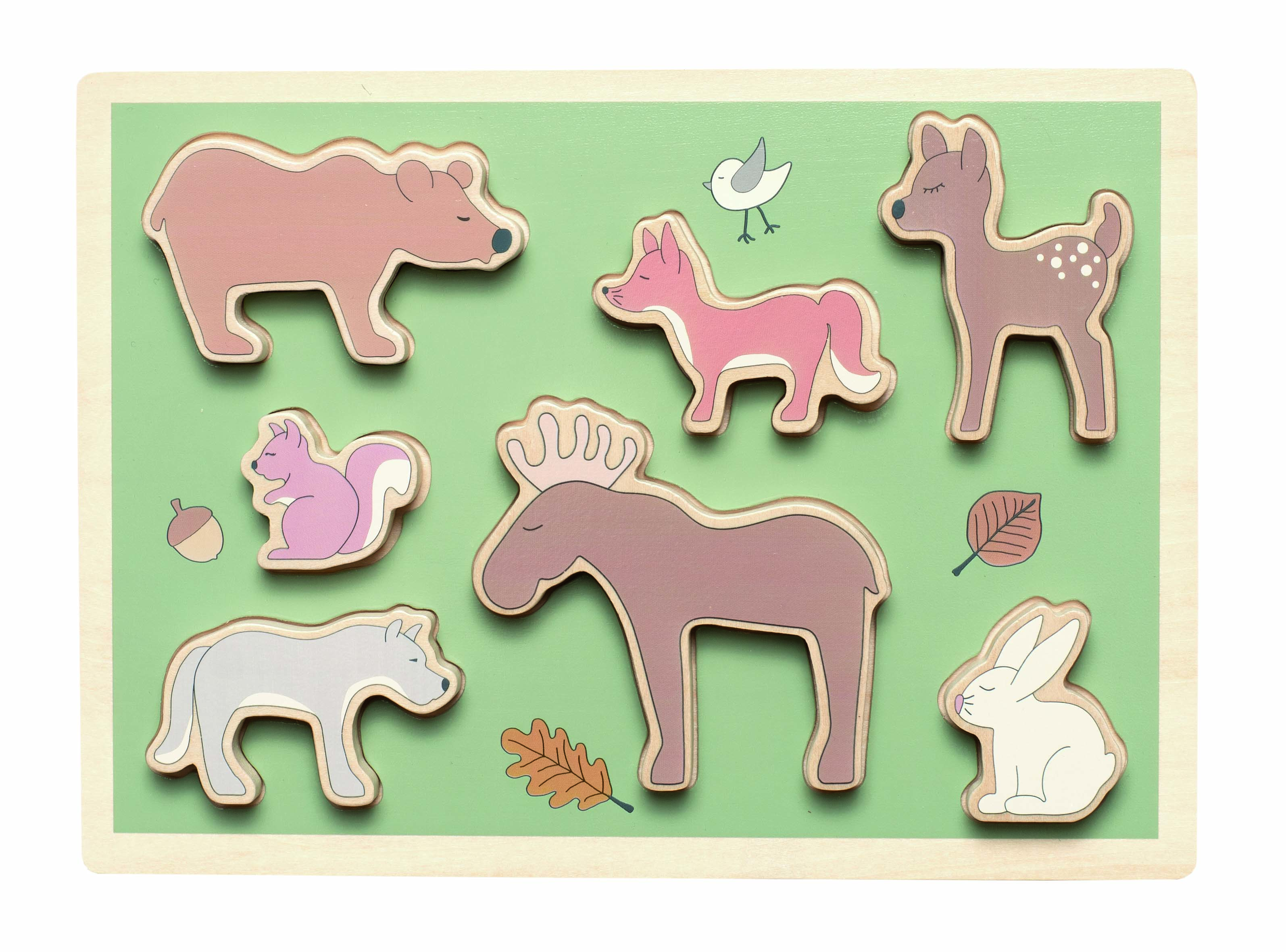 Holzpuzzle mit den häufigsten Tieren im Wald.