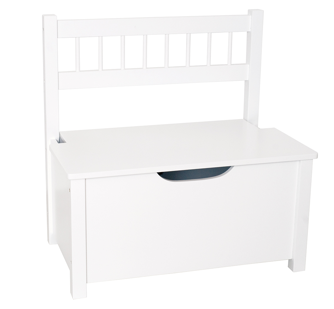 Diese schöne Truhenbank mit Deckel ist eine praktische Lösung zum Verstauen von Spielzeug und bietet zudem einen schönen Sitzplatz im Kinderzimmer.