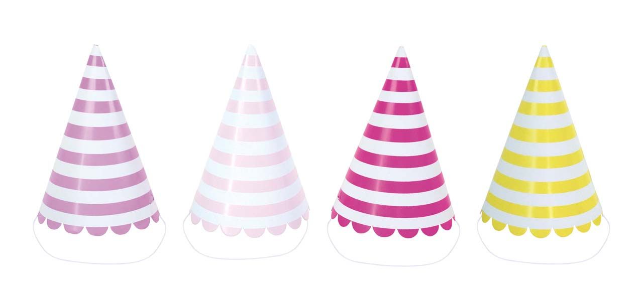 Papphüte Partyhüte mit Streifen 8er Set rosa lila gelb