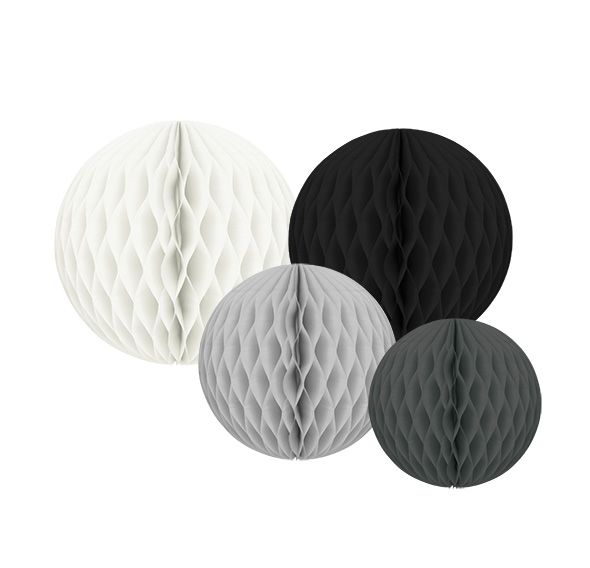 Pompoms Papier Wabenbälle 4er Set weiß grau schwarz