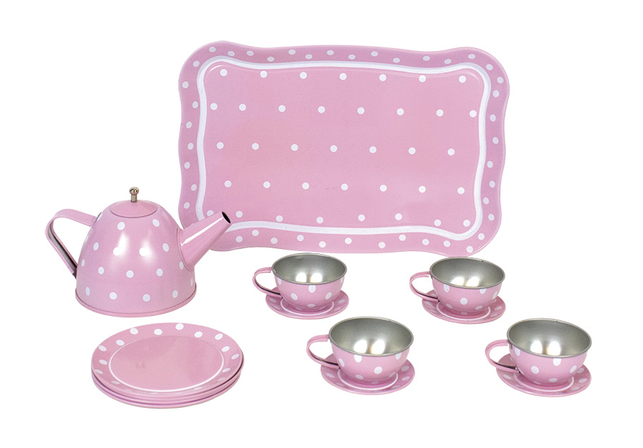 Tee Set aus Blech im Koffer 15 teilig rosa