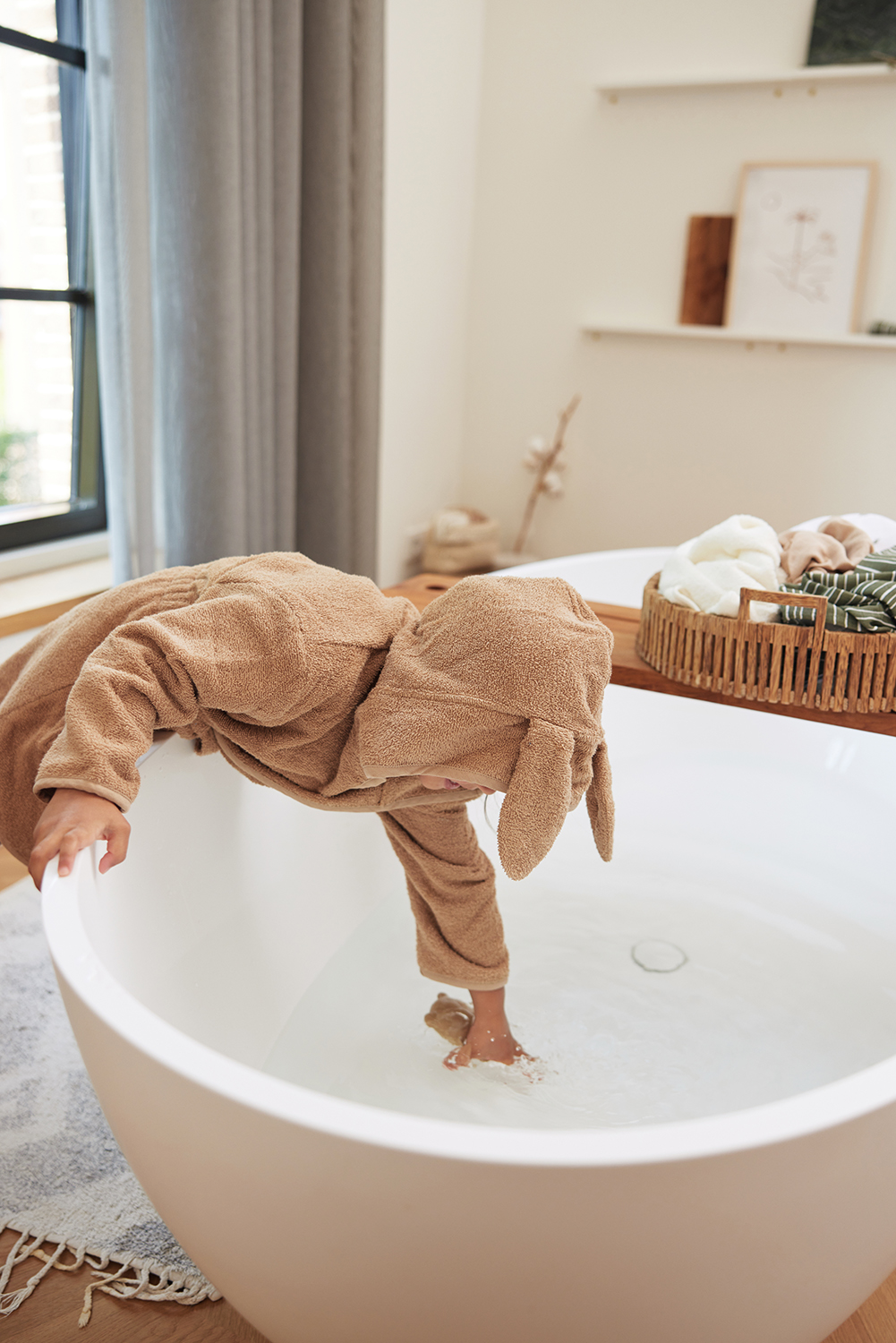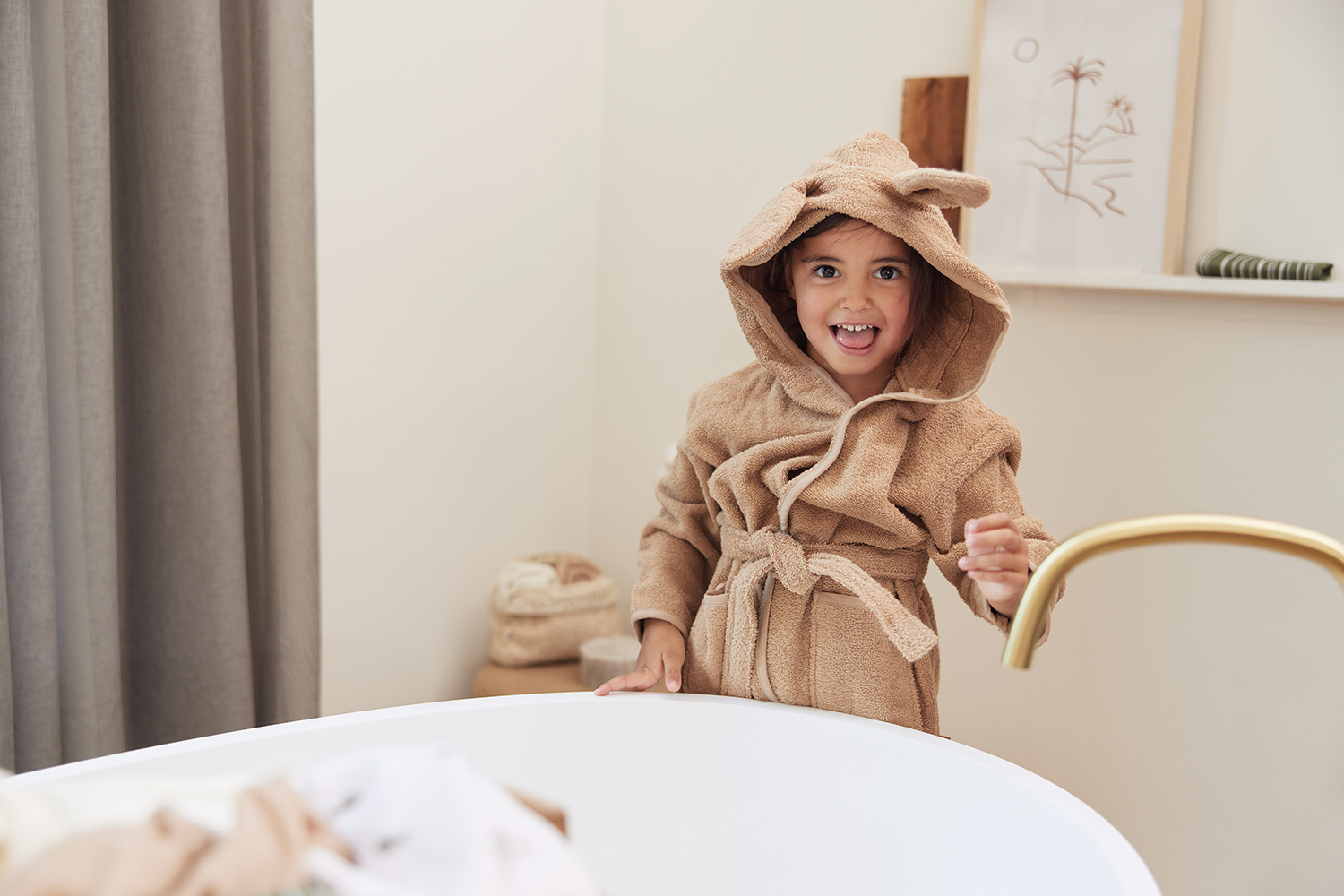 Der Bademantel ist perfekt nach dem Baden, Duschen oder Schwimmunterricht zu verwenden.