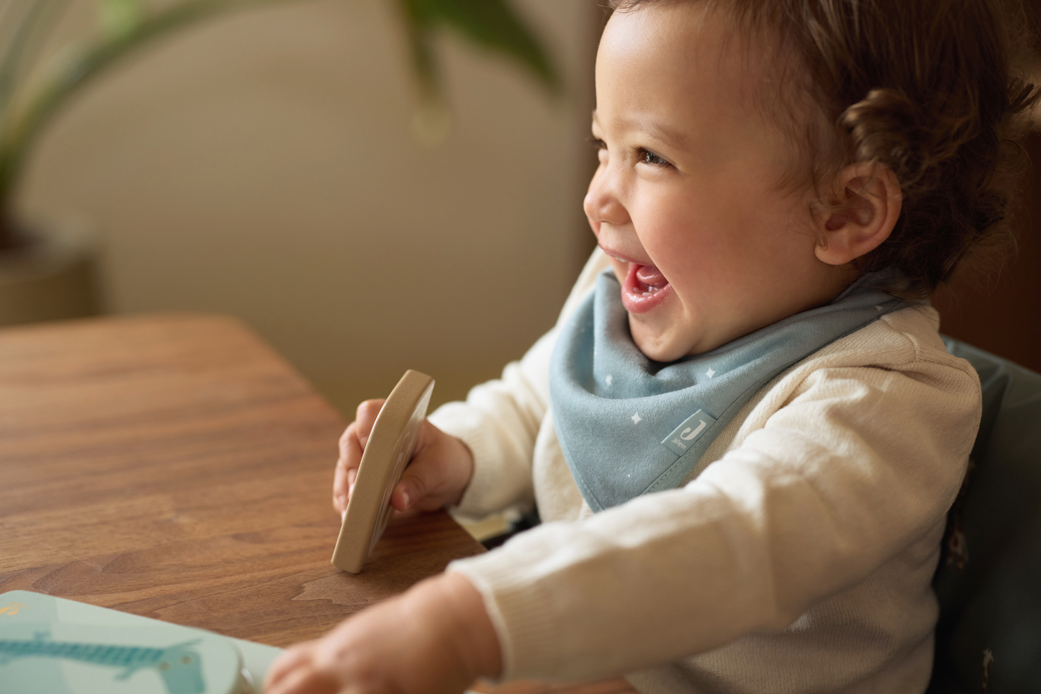 Es gibt mehrere Druckknöpfe, das Lätzchen wächst daher mit dem Halsumfang deines Kindes mit.