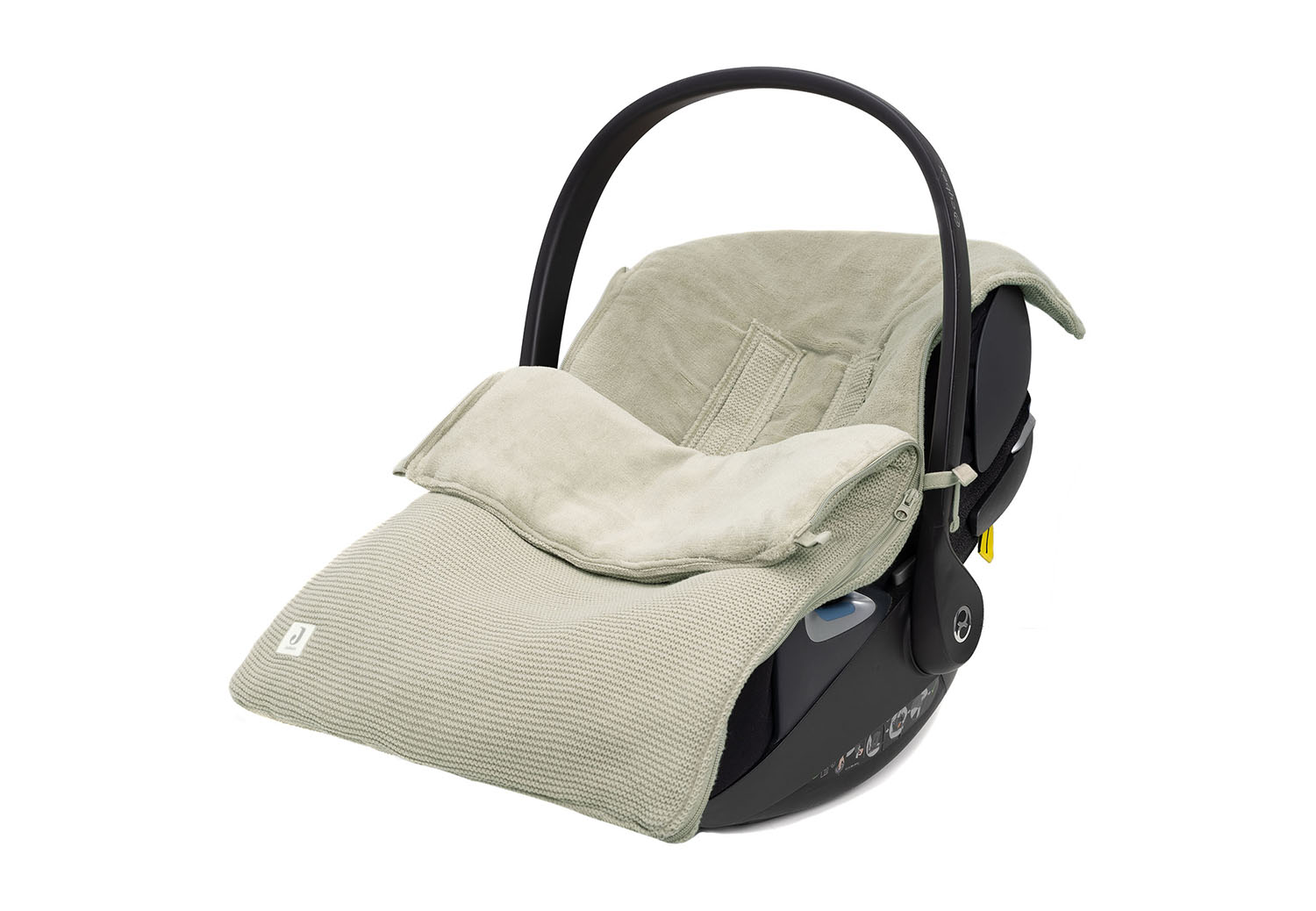 Von oben lässt er sich mit einem Druckknopf schnell in eine Mütze verwandeln, damit der Kopf auch warm bleibt, sobald du den Autositz draußen trägst oder spazieren gehst.