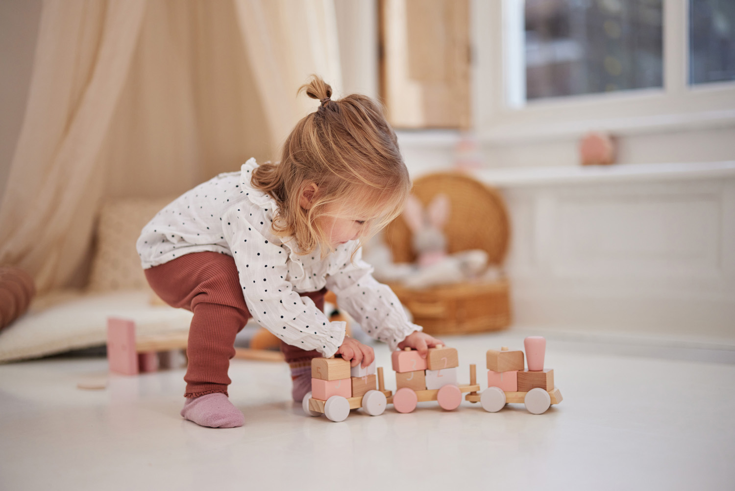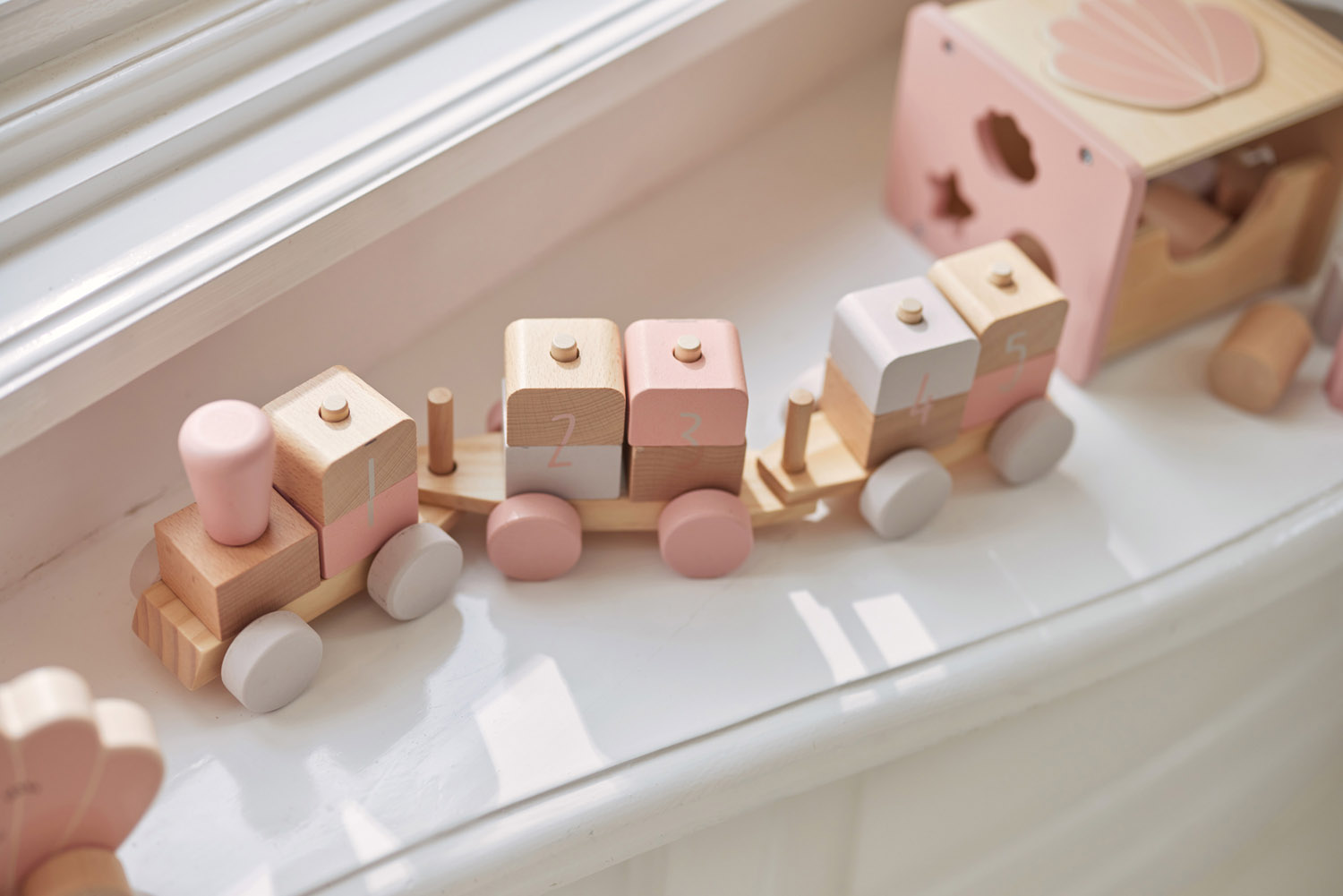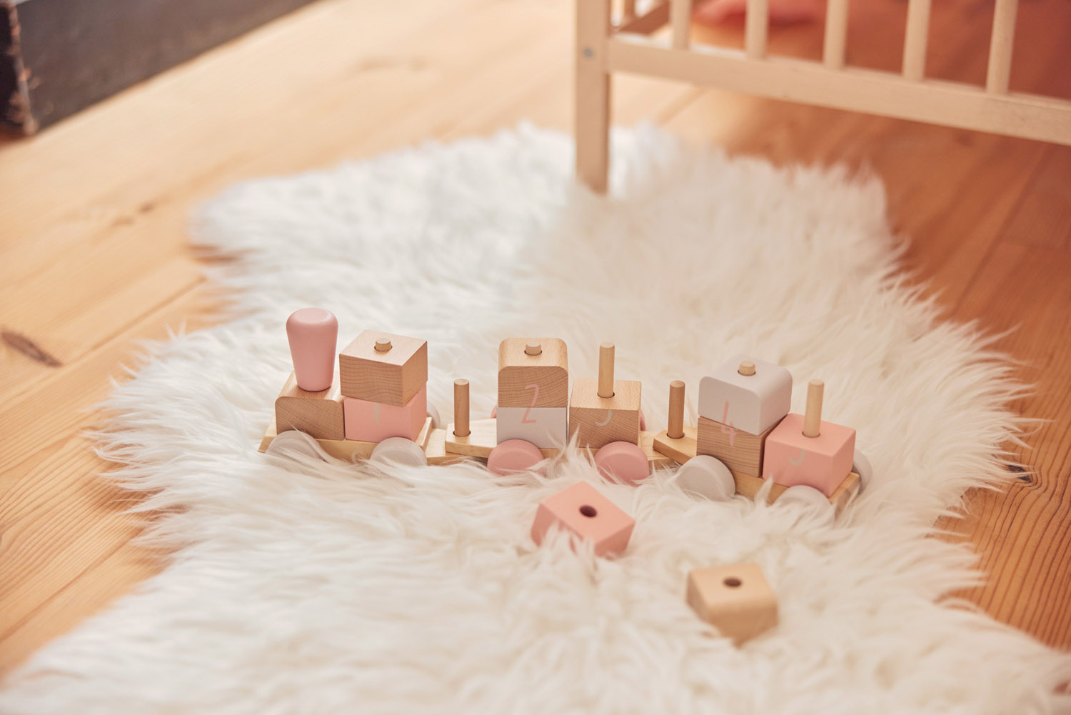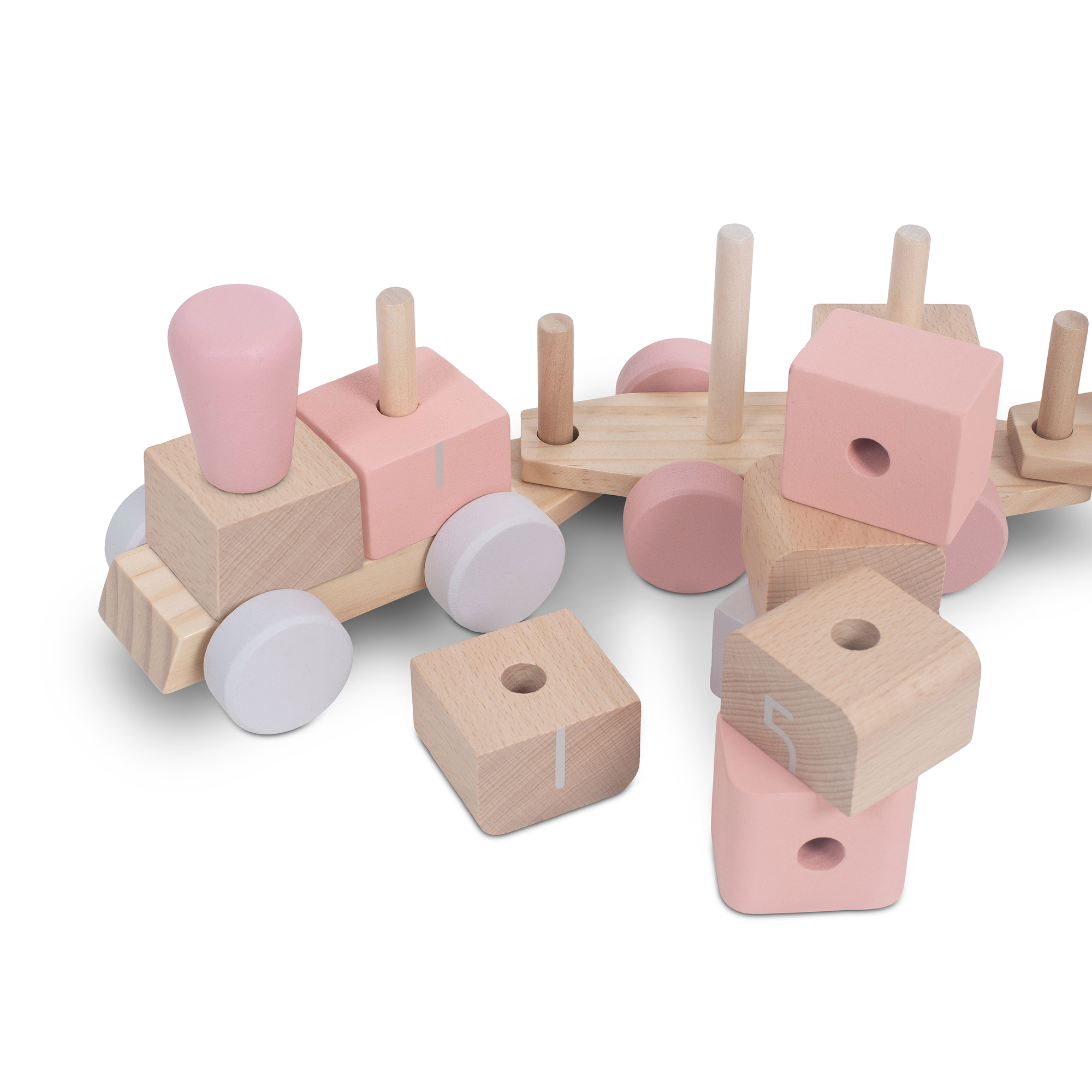 Dieser liebevoll gestaltete Holz-Zug mit Formen-Steckspiel aus verschiedenen Holzklötzchen sorgt für jede Menge Spielspaß!