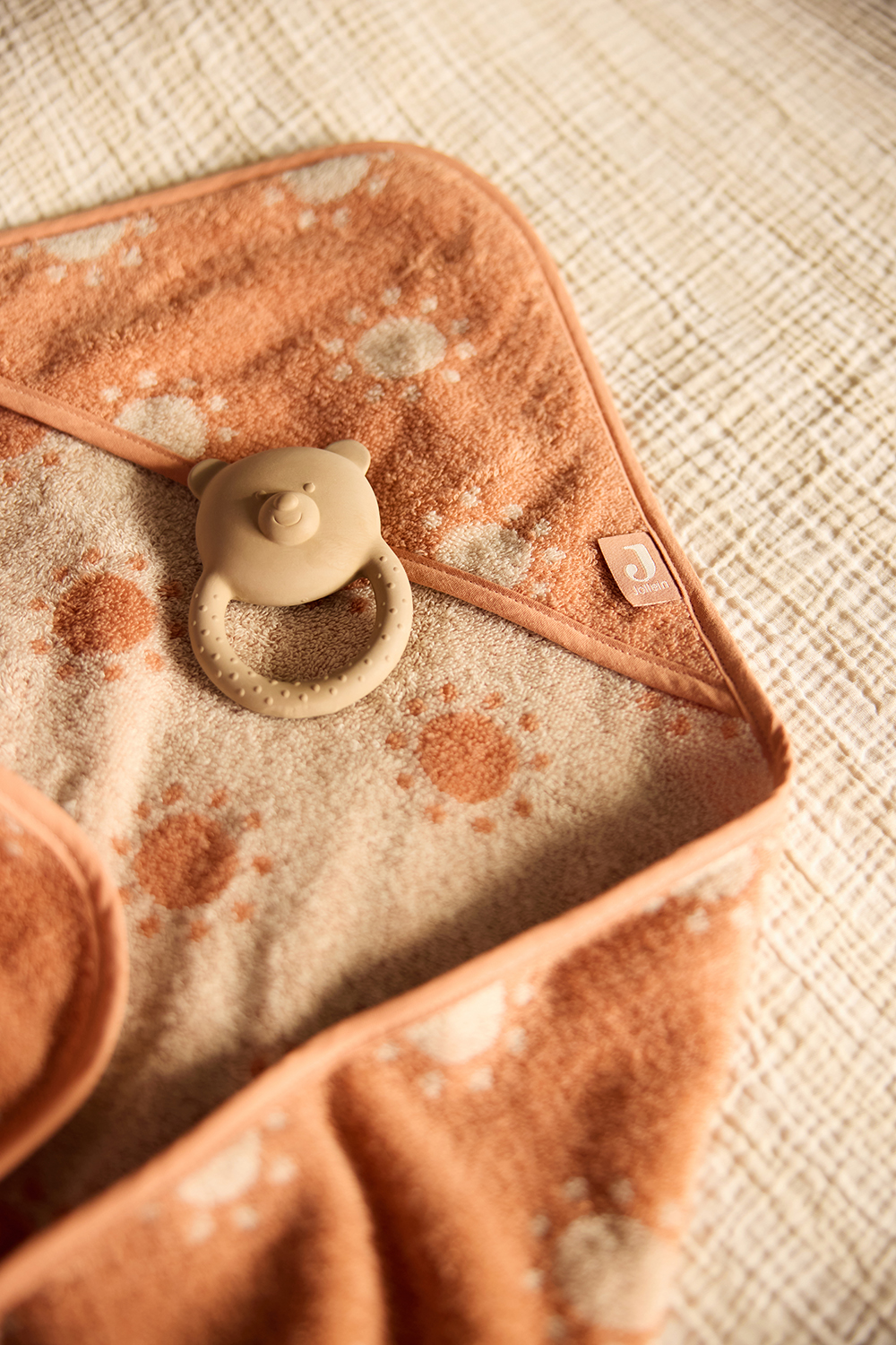 Nach dem Baden kannst du dein Baby wunderbar in dieses weiche Kapuzenhandtuch einwickeln.