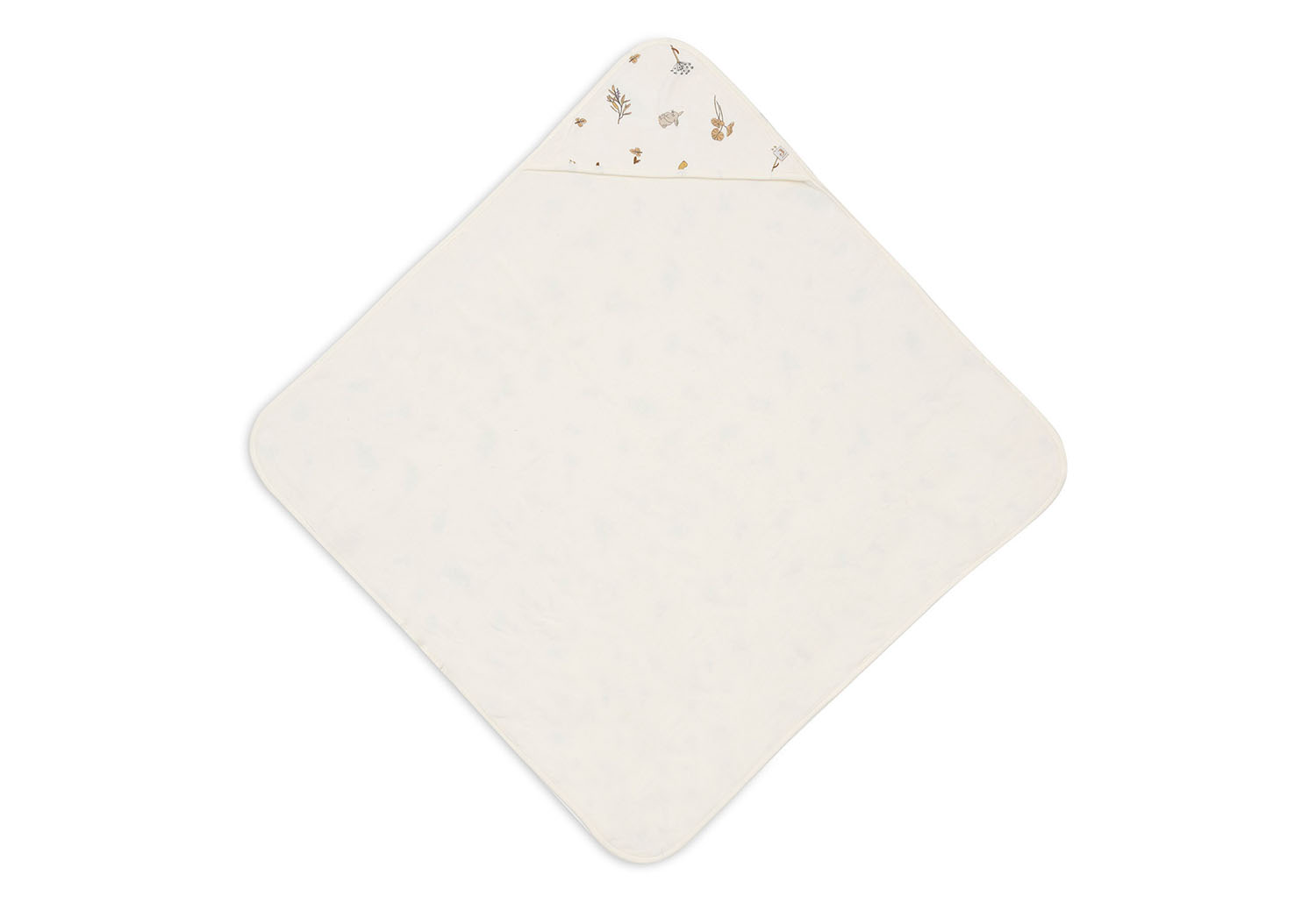 Dieses Kapuzenhandtuch hat den mega-süßen Riverside Print mit vielen Häschen, Enten und Riverside-Pflanzen.