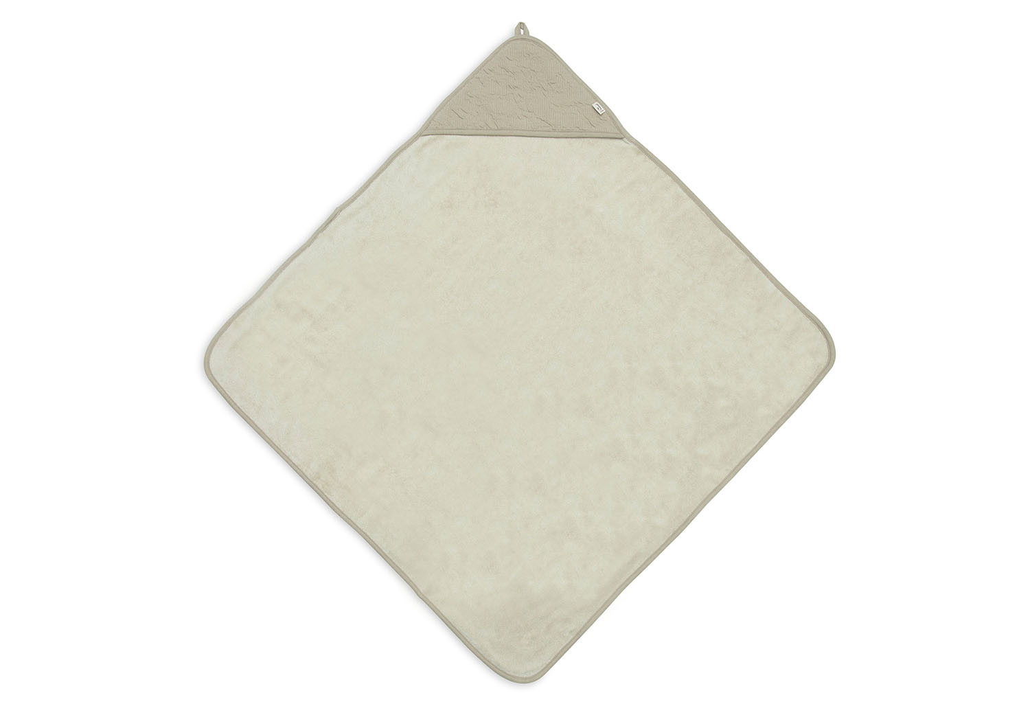 Das Soft Waves-Kapuzenhandtuch ist in Olive Green und Nougat erhältlich und wird aus OEKO-TEX-zertifizierter Baumwolle hergestellt.