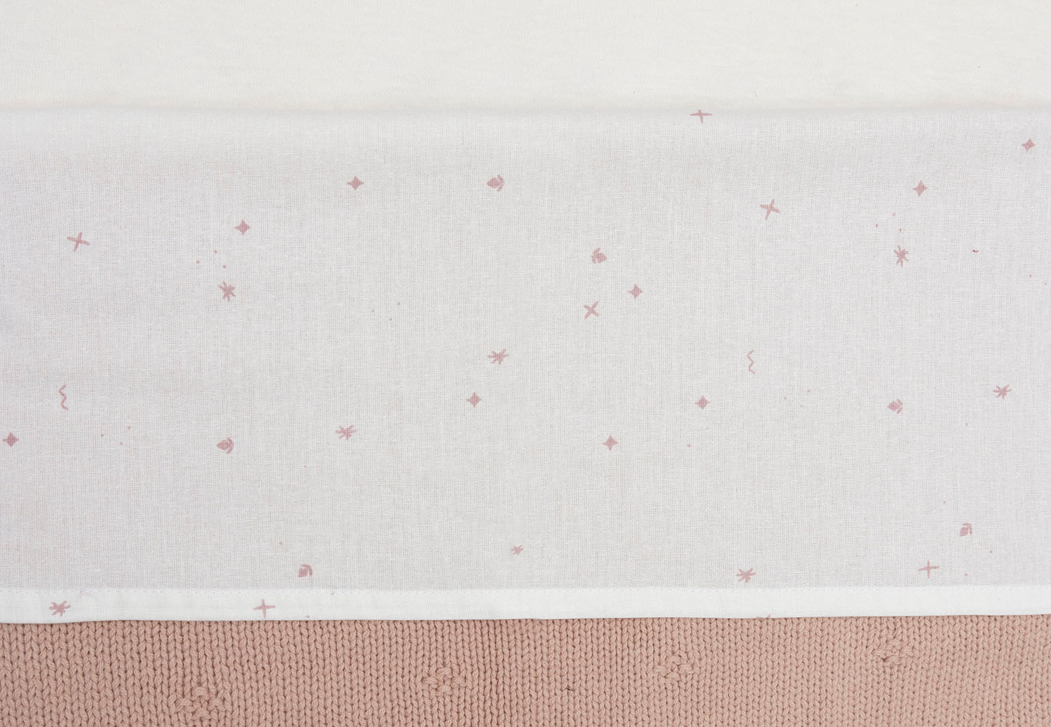 Das Laken hat einen beruhigenden Print von schimmernden Sternen in Wild Rose auf einem Hintergrund aus neutralem Ivory.