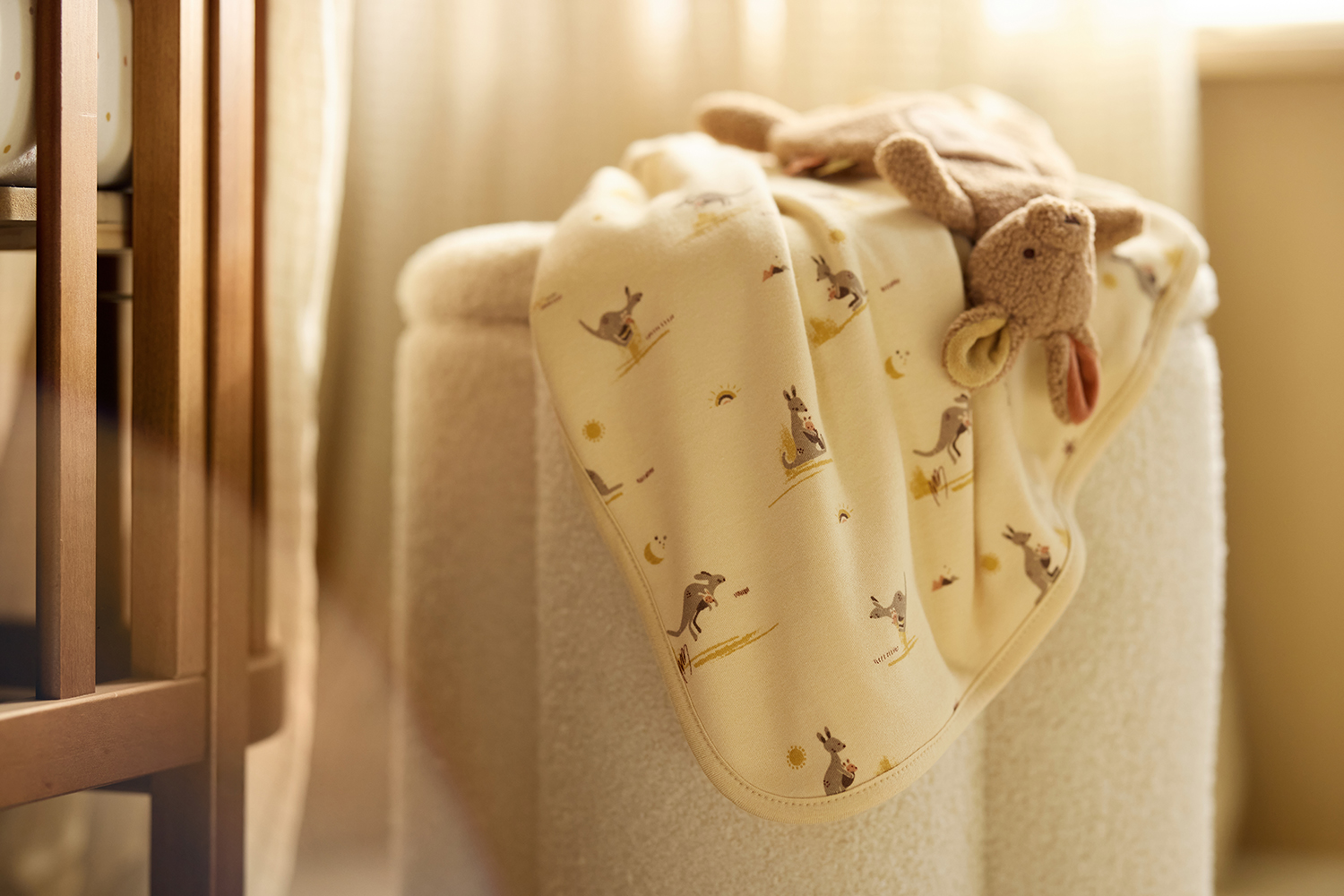Das Tuch liegt angenehm in kleinen Händen und vermittelt ein ruhiges, vertrautes Gefühl.