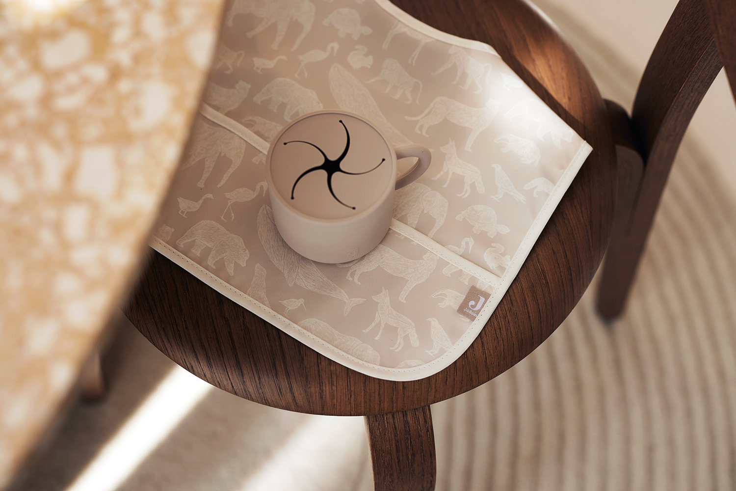 Mit dem weichen Klettverschluss kannst du das Lätzchen ganz einfach am Hals deines Kindes befestigen und nach dem Gebrauch abnehmen. Erhältlich in Nougat und Olive.