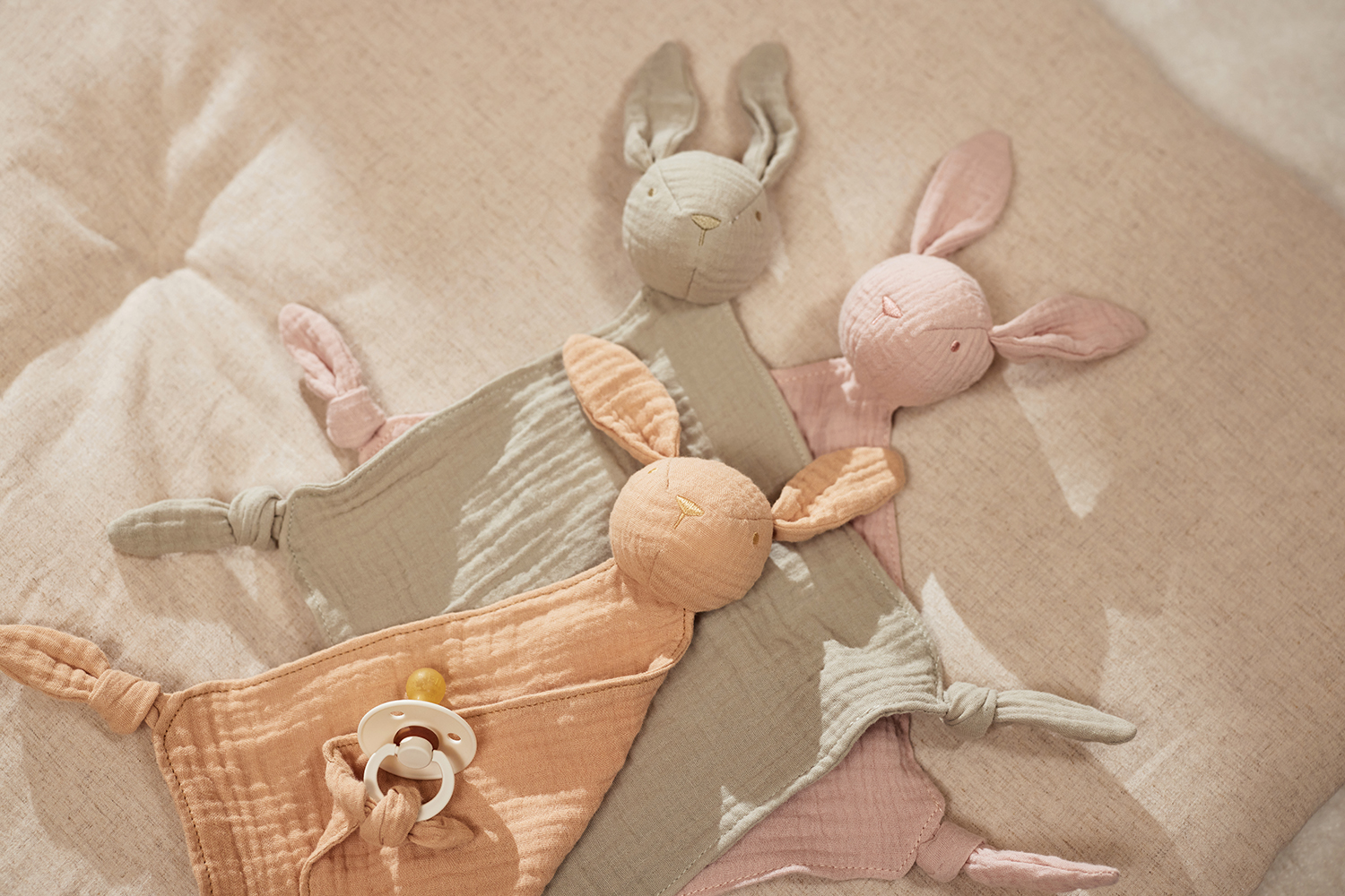 Dein Baby kann den süßen Hasen knuddeln und sich von ihm trösten lassen, und das Tuch ist immer in Reichweite.