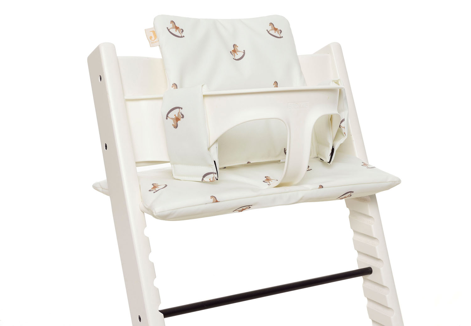 Der Sitzverkleinerer passt perfekt in Kinderhochstühle und hat einen tollen Nostalgic Ride Print mit einem Allover-Print aus niedlichen Schaukelpferden!