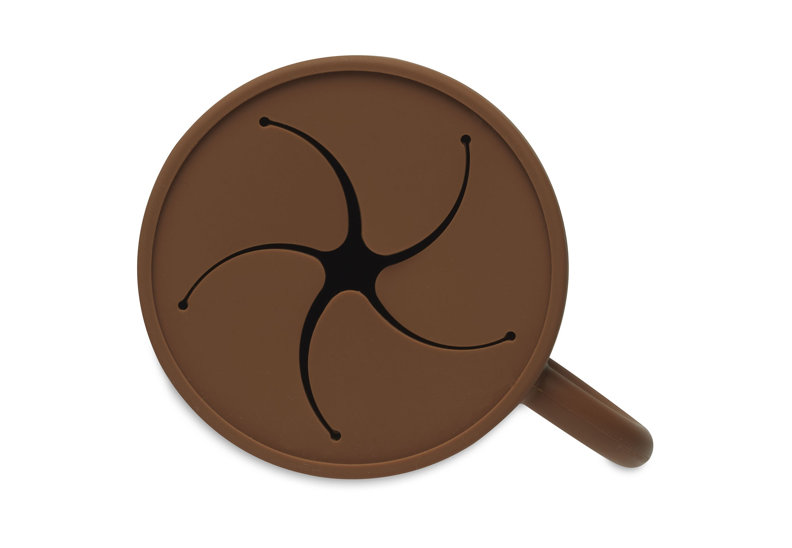 Den Deckel kannst du ganz einfach abschrauben und in der Mitte des Deckels befindet sich eine spiralförmige Öffnung, damit dein Mini einen Snack aus dem Becher greifen kann.