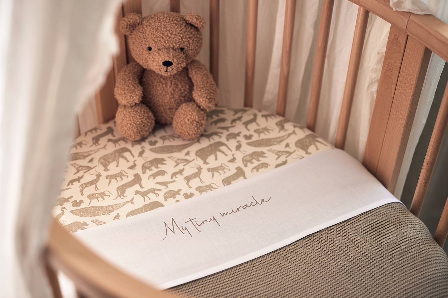 Tipp: Ein Spannbettlaken in Babybettgröße passt auch perfekt um eine Wickelauflage oder ins Reisebett.