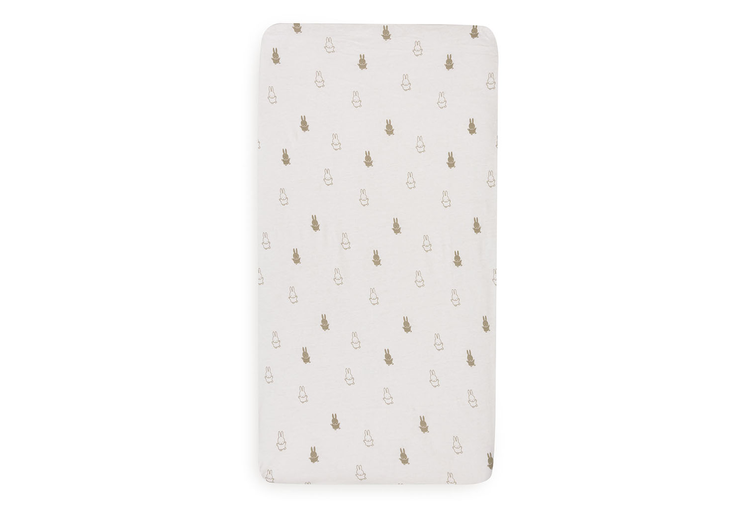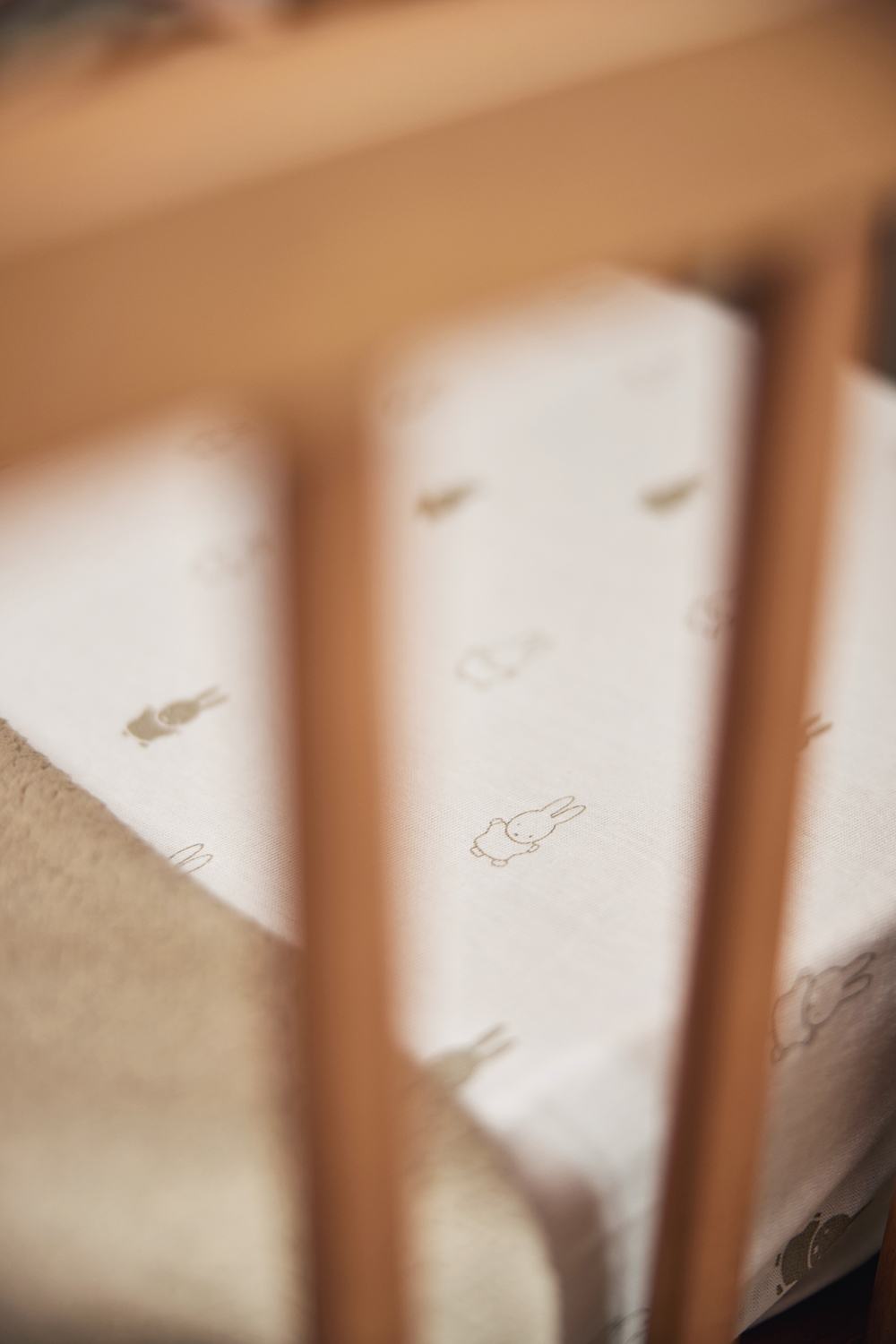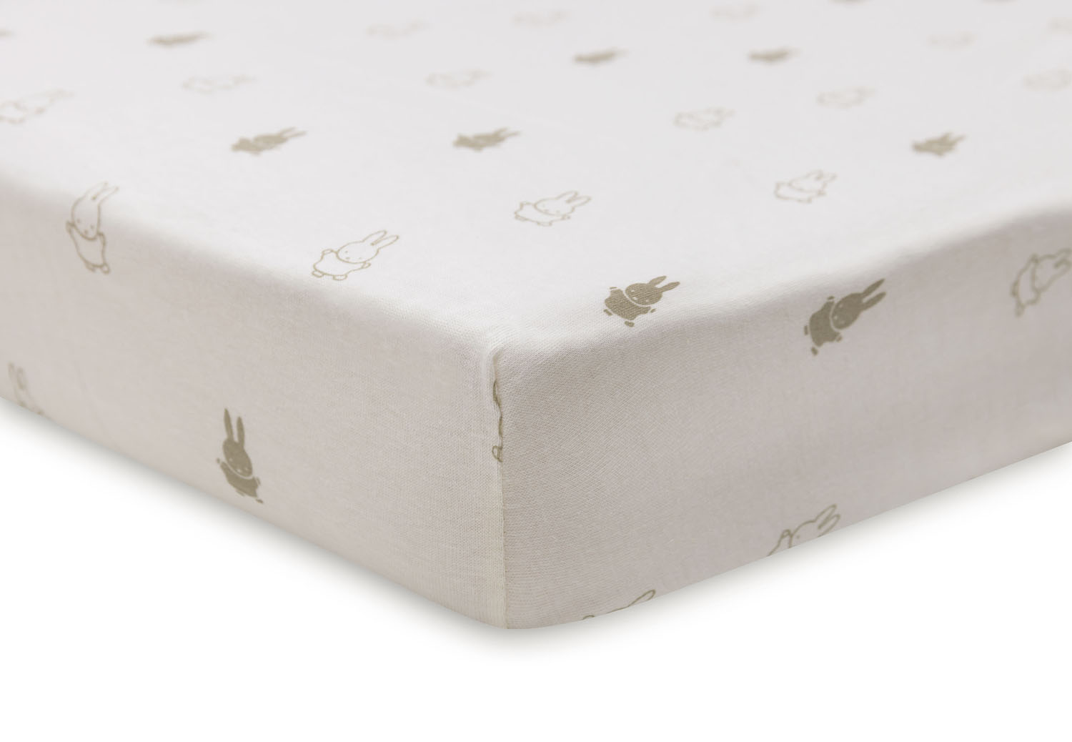 Dieses Spannbettlaken passt perfekt zu den anderen Artikeln aus dem Miffy-Thema und ist in den Farben Olive Green und Nougat erhältlich.