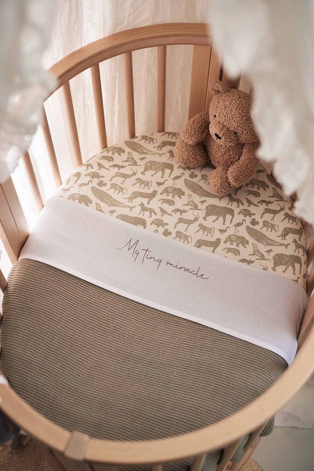Tipp: Ein Spannbettlaken in Babybettgröße passt auch perfekt um eine Wickelauflage oder ins Reisebett.