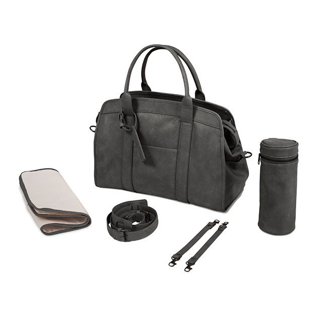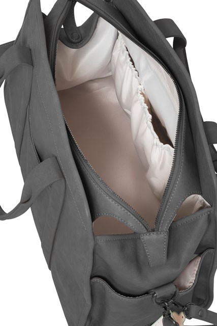 weiches Kunstleder mit praktischem kleinen Fach vorne und 2 Seitentaschen. Praktische Tragegriffe und separater Tragegurt sorgen für ein bequemes Tragen. Die Tasche verfügt zusätzlich über 2 Aufhängungen für die Befestigung am Kinderwagengriff. Geräumige Aufteilung im Inneren.
