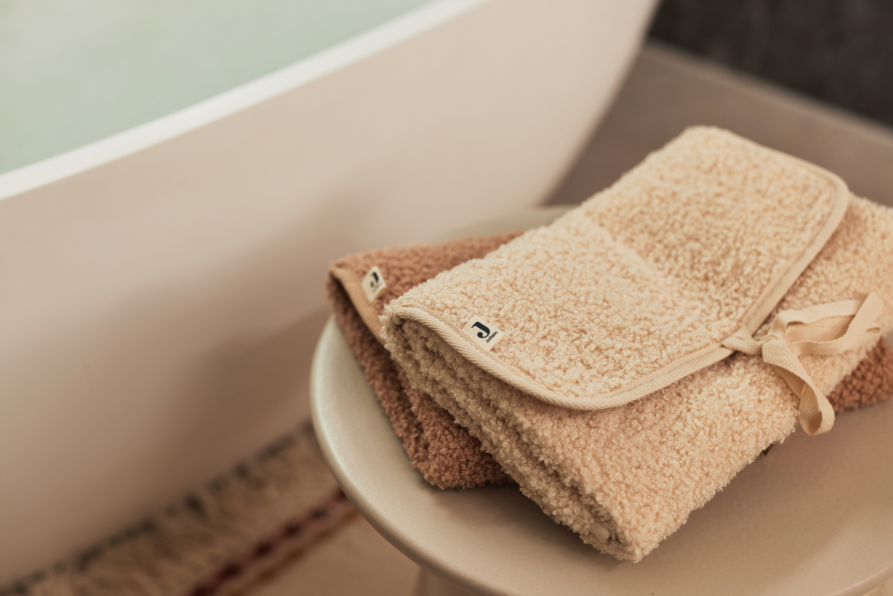 Diese Boucle-Wickelmatte ist schön weich, abwischbar und wasserabweisend.