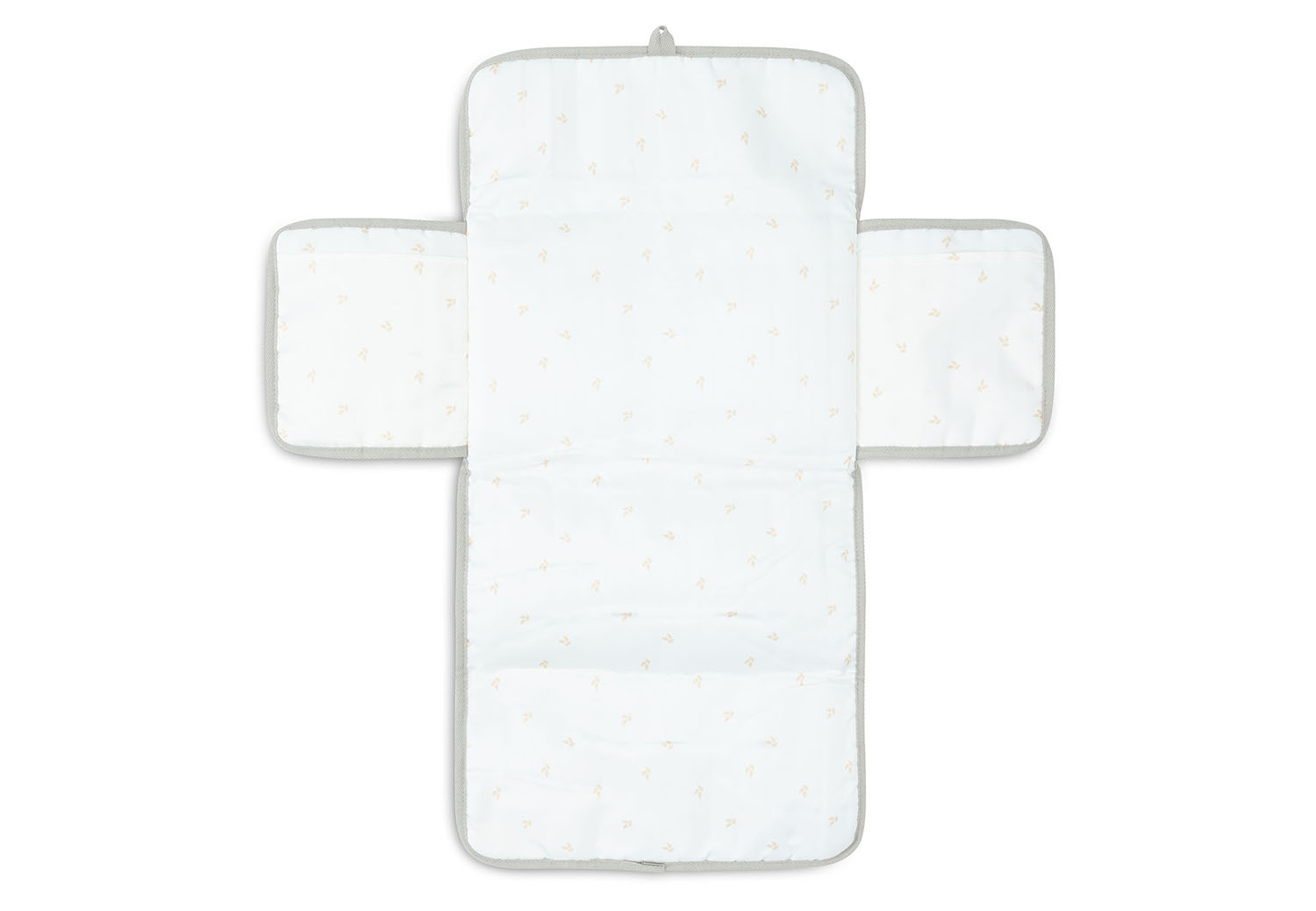 Unsere trendige Wickelunterlage aus Mullstoff ist der perfekte Begleiter unterwegs für geschäftige Eltern!