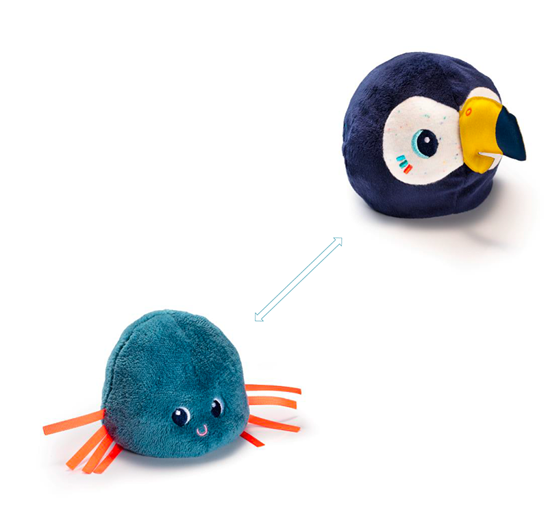 Hier verstecken sich gleich zwei verschiedene Stofftiere in Einem!