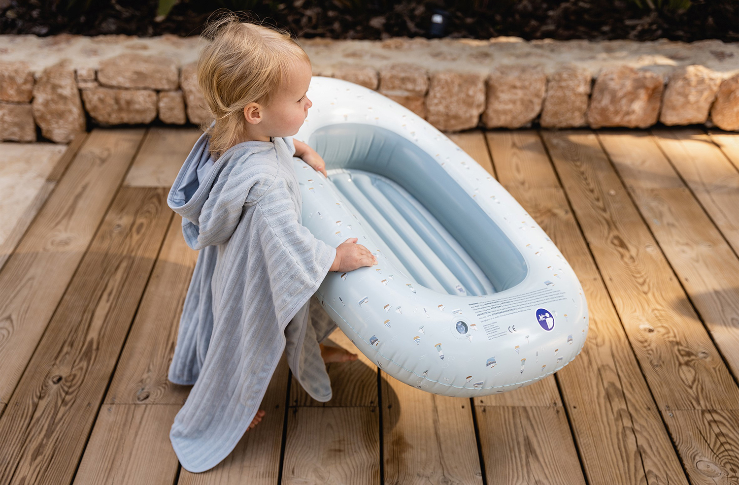 Ein kompaktes und bequemes Badeboot, in dem Ihr Kind an heißen Sommertagen wunderbar sitzen kann.