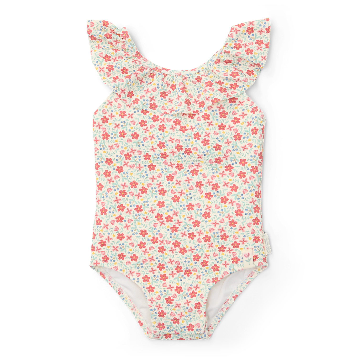 Der Badeanzug, erhältlich in vier Größen, verfügt über praktische Druckknöpfe im Schritt für einfache Windelwechsel in den beiden kleineren Größen, 62/68 und 74/80.