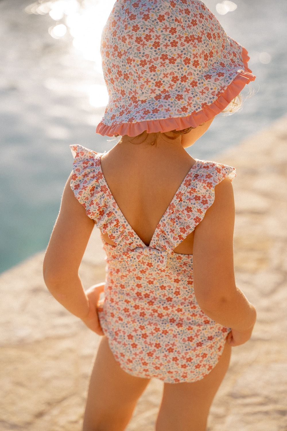 Kombiniere ihn mit den passenden Badeschuhen für einen Sunny Flowers Look von Kopf bis Fuß. Vergiss nicht, immer Sonnencremes zu verwenden, um dein Kleines zu schützen.