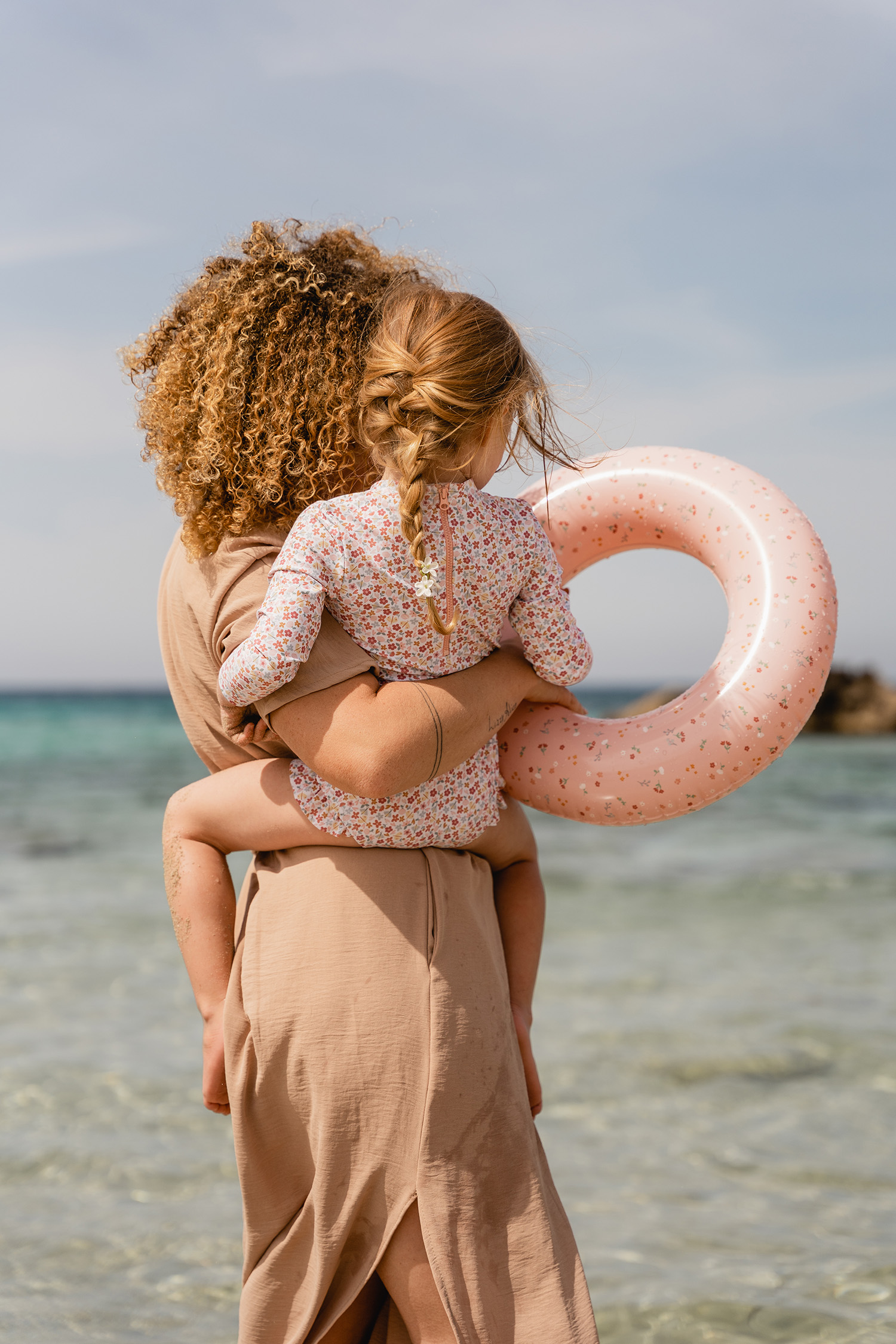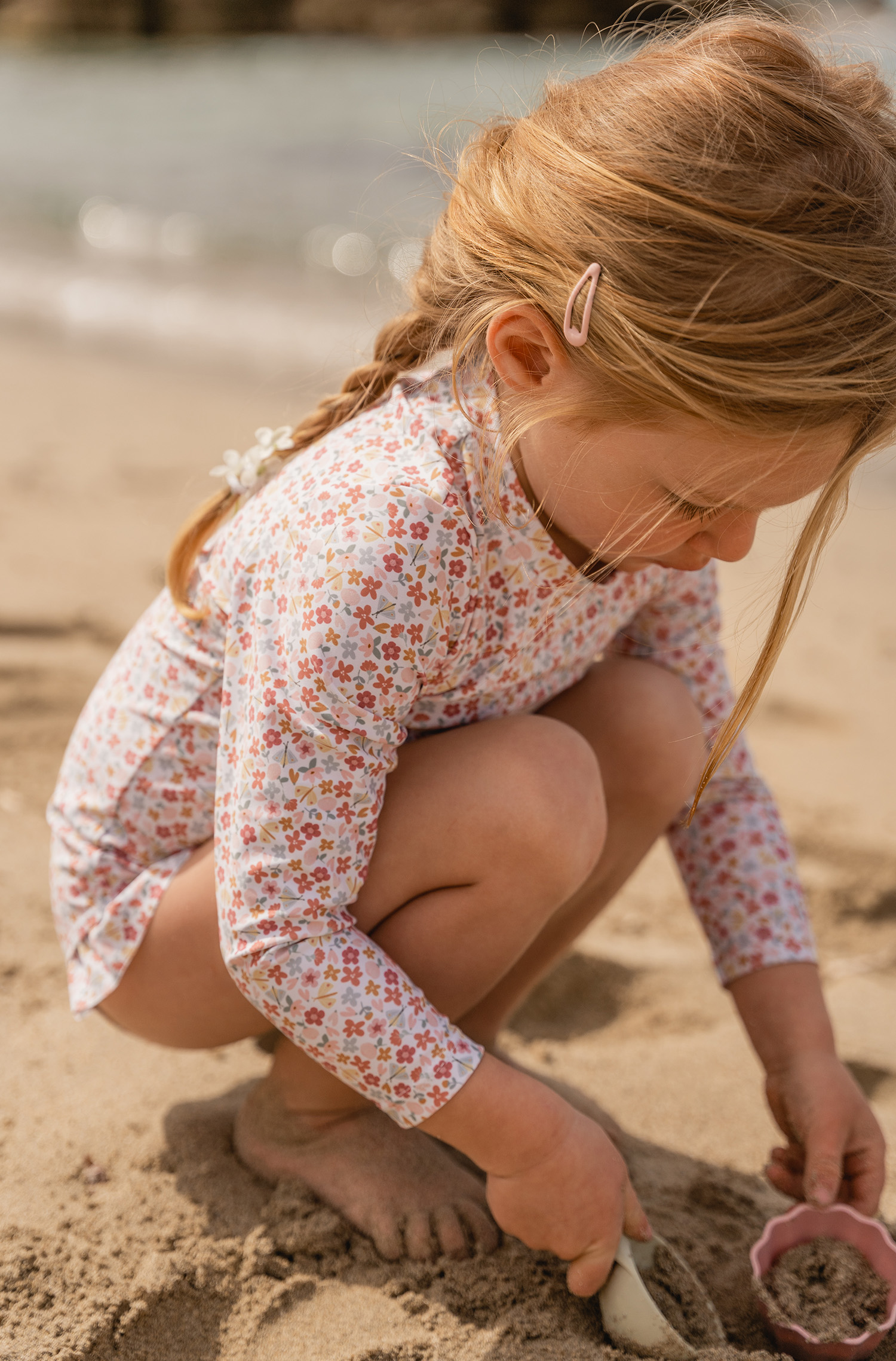 Dieser langärmelige Badeanzug aus recyceltem Polyester hält dich im Wasser warm und schützt dich vor der Sonne, während du den ganzen Tag spielst.