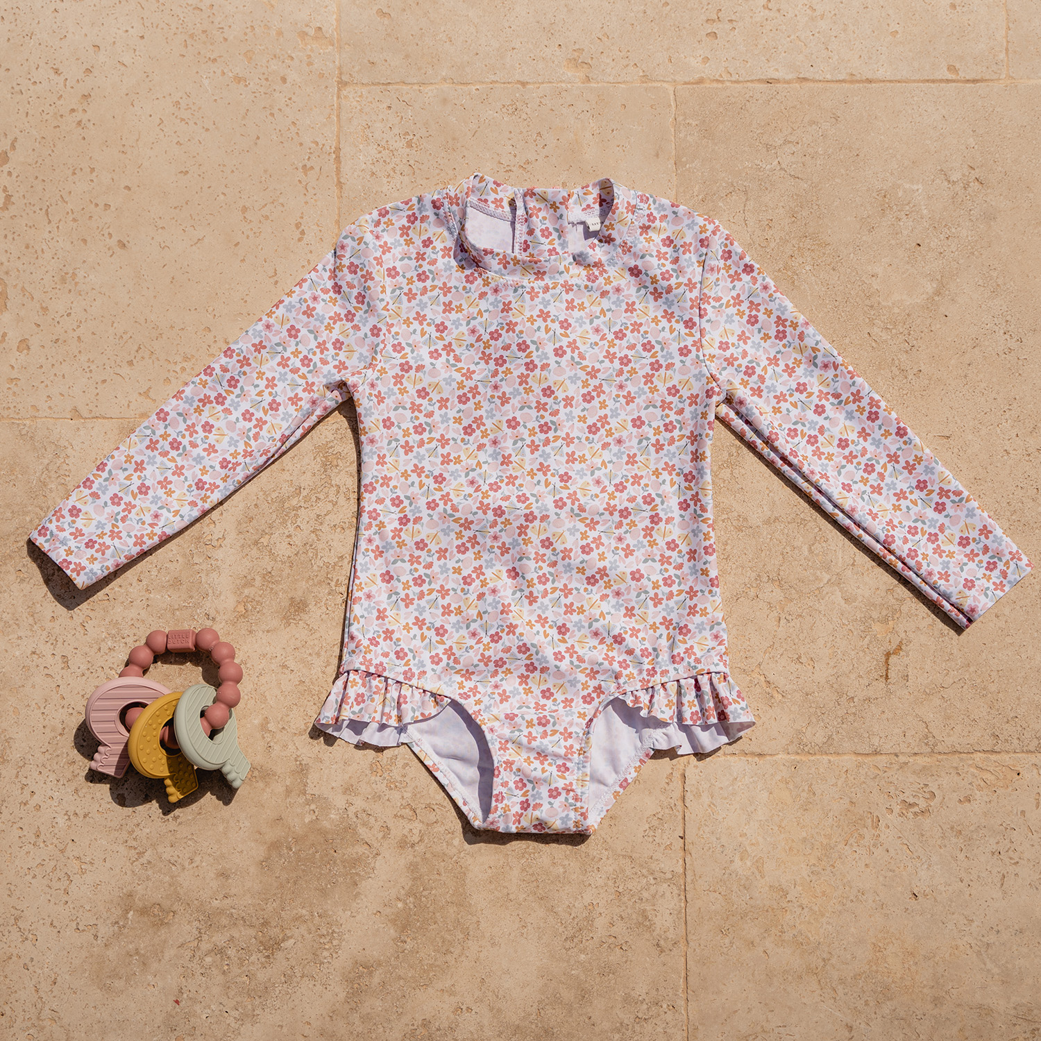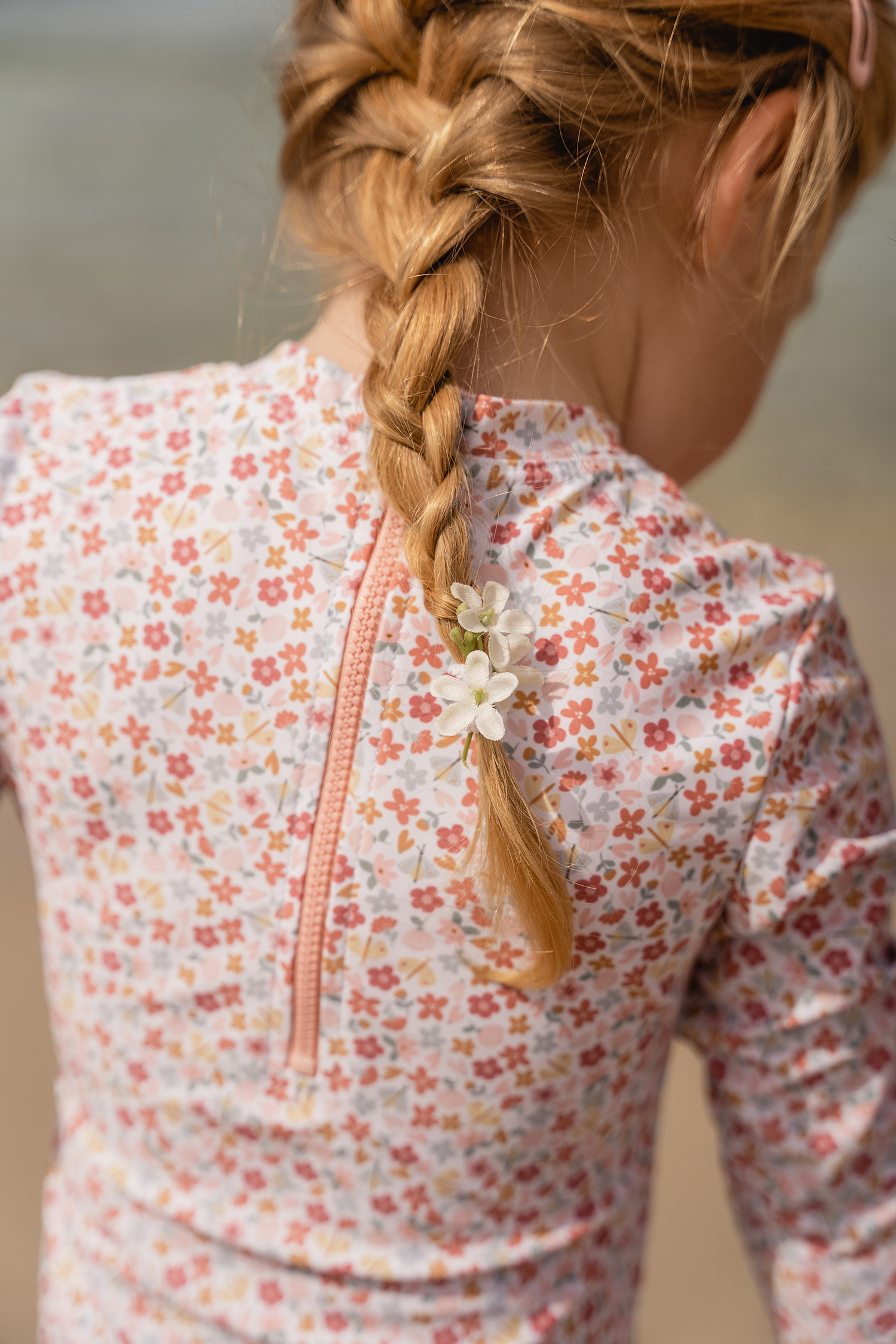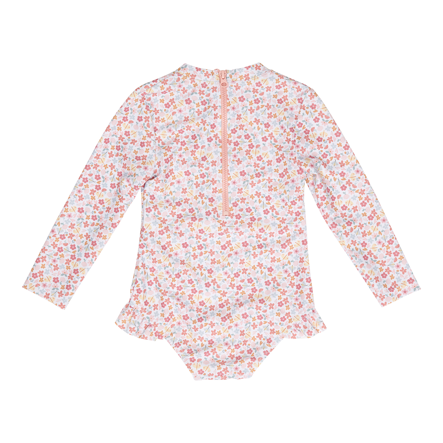 Der sommerliche Look des Summer Flowers-Musters in Kombination mit den Rüschen an der Unterseite macht diesen langärmeligen Badeanzug nicht nur schön, sondern durch den Reißverschluss am Rücken auch bequem und praktisch.