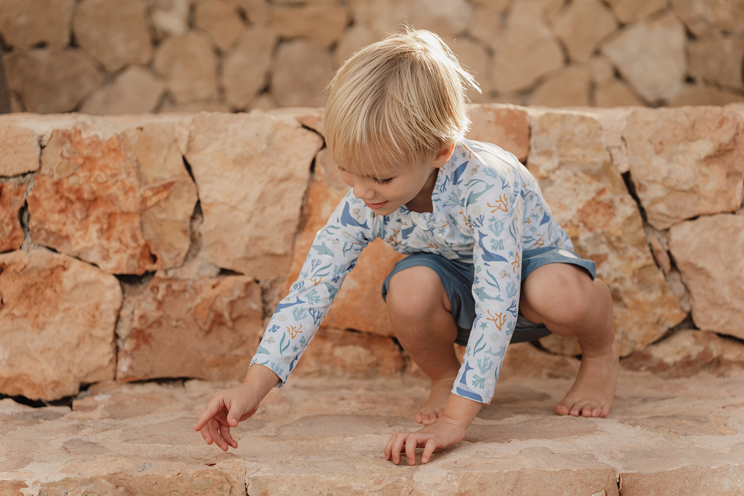 Lassen Sie Ihr Kind die Magie des Wassers auf eine stilvolle und komfortable Art und Weise erleben! Komplettieren Sie den coolen Blue Whale-Look mit einem passenden Fischerhut.