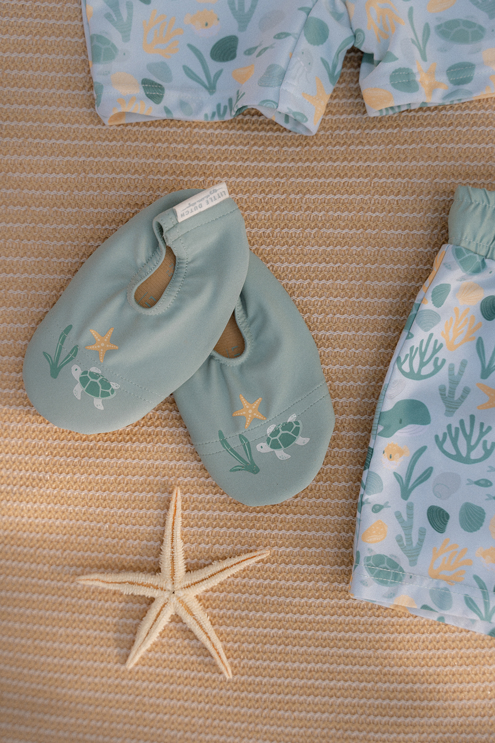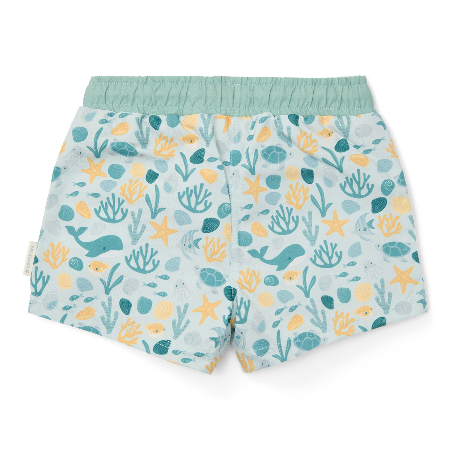 Das Seashells-Design mit bunten Muscheln, Seesternen, Korallen und Walen verleiht dieser Badehose eine verspielte Meeresatmosphäre.