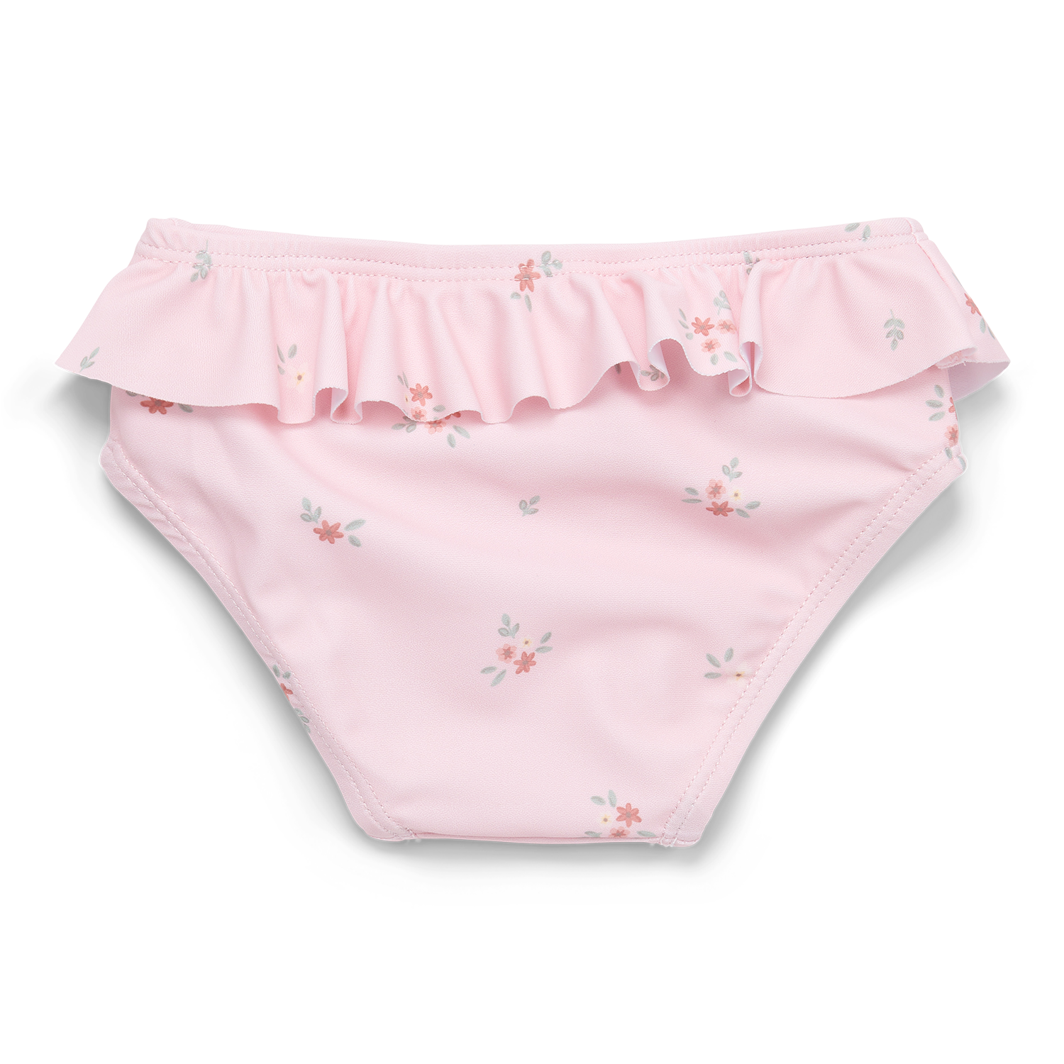 Die Blumen auf dem rosafarbenen Hintergrund spiegeln die Schönheit der Natur wider, während die bezaubernden Rüschen der Badehose bei jeder Wasseraktivität Ihres Kindes mittanzen.