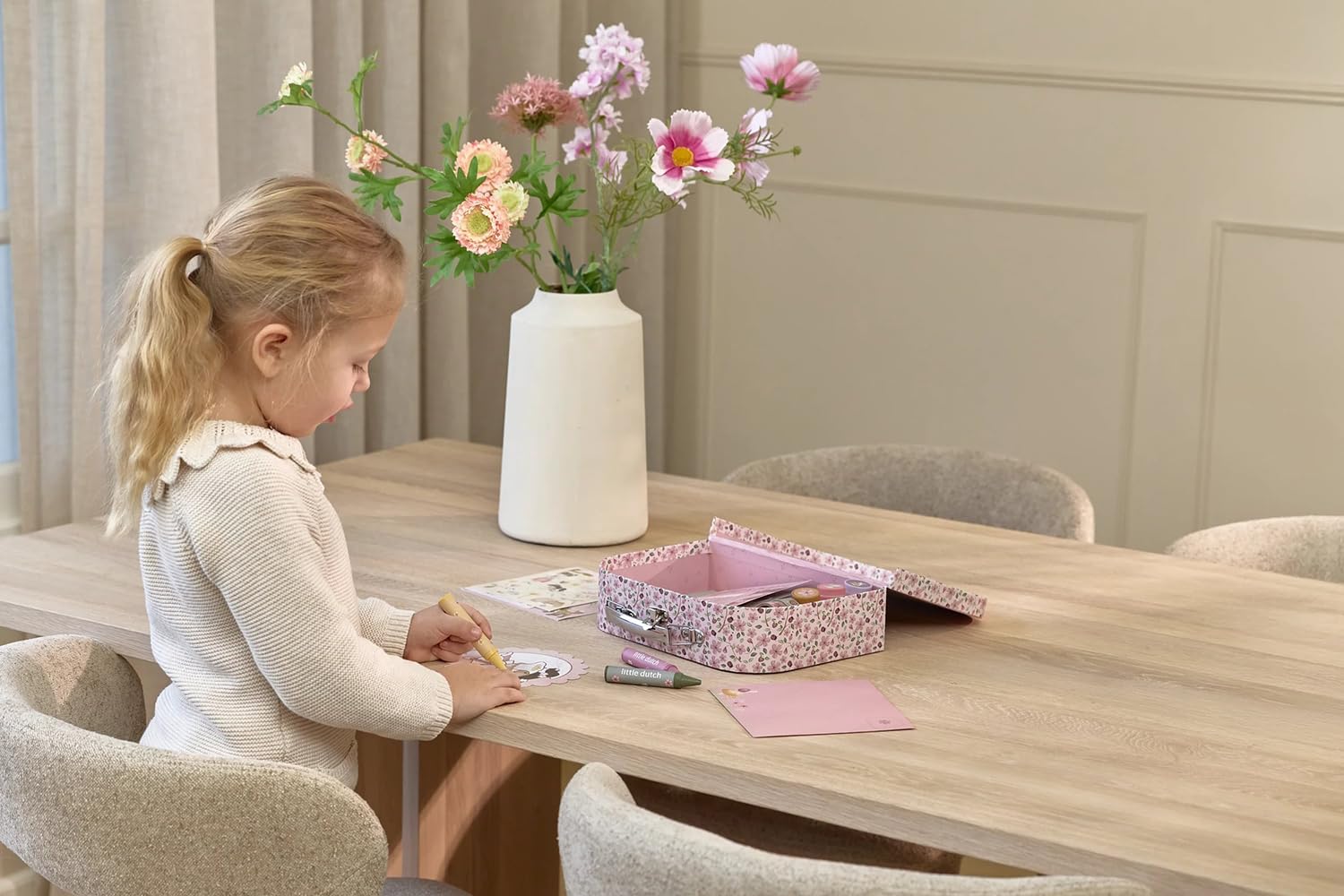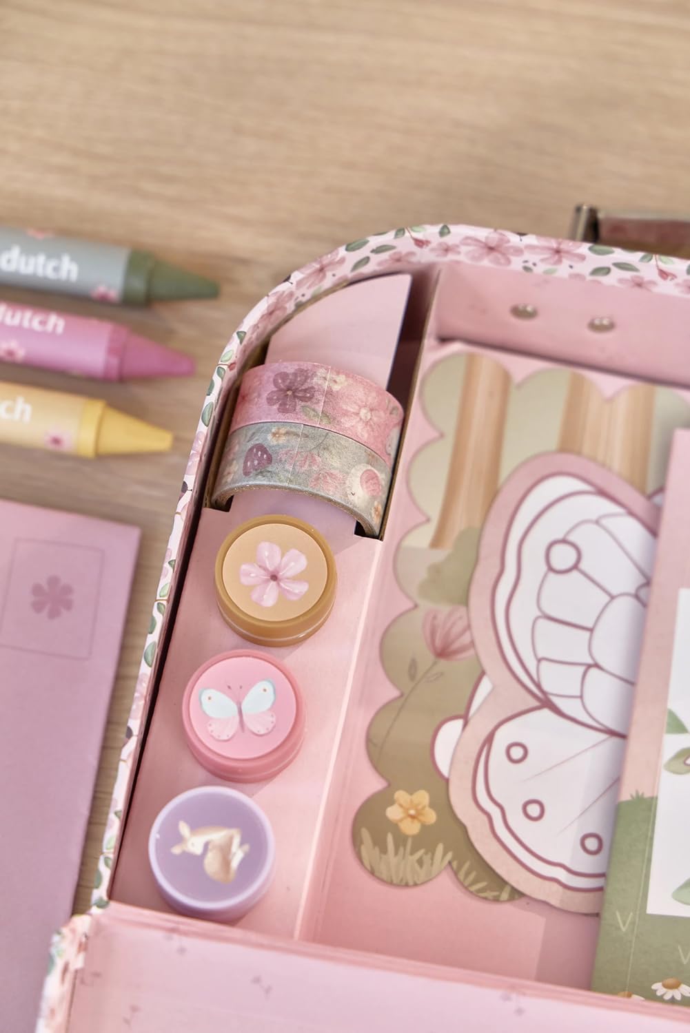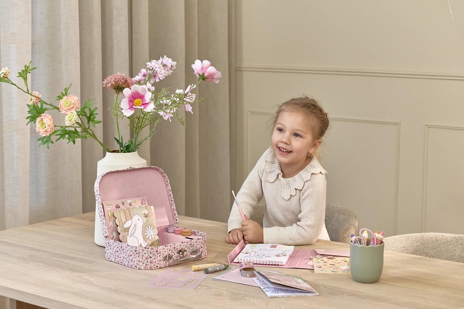 Lass die Kreativität mit diesem wunderschönen Bastelkoffer voller fröhlicher Farben und liebevoller Illustrationen aufblühen.