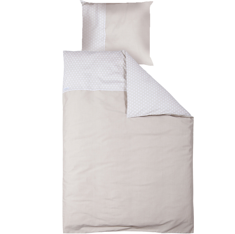 Bettwäsche beige mit weißen Sternen (Gr. 135x200 cm + 80x80 cm)